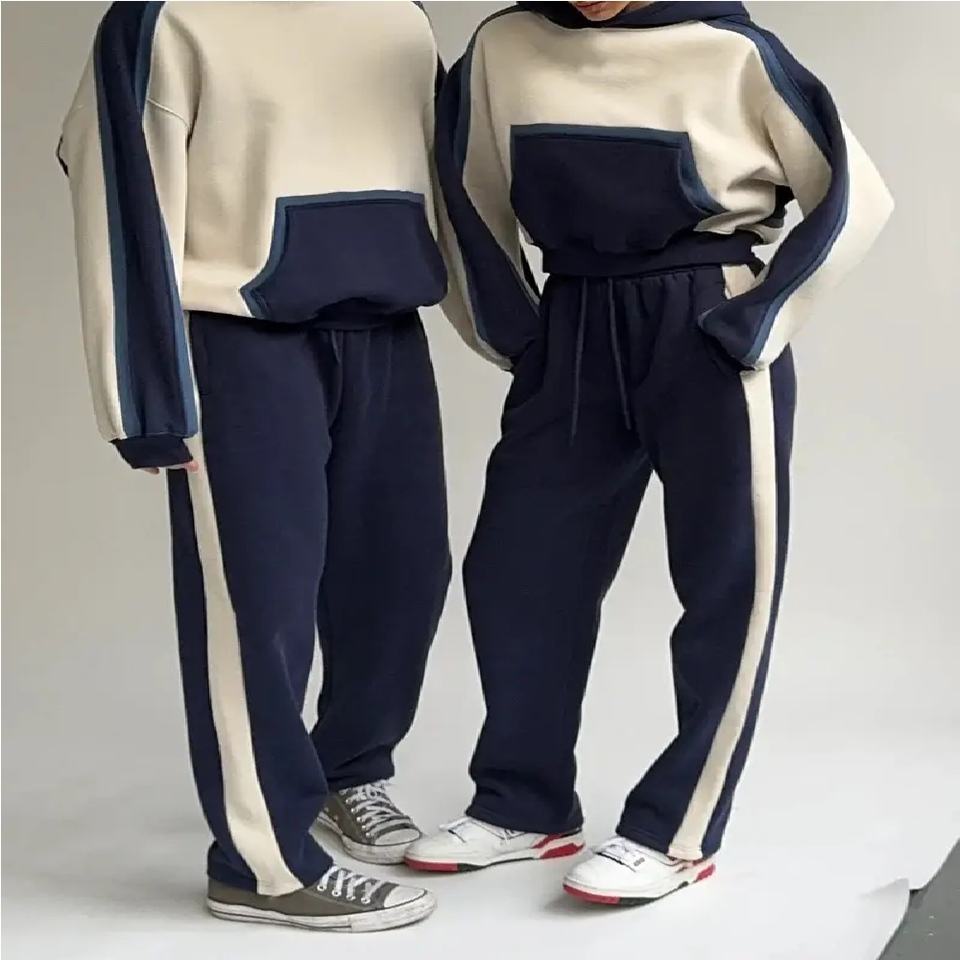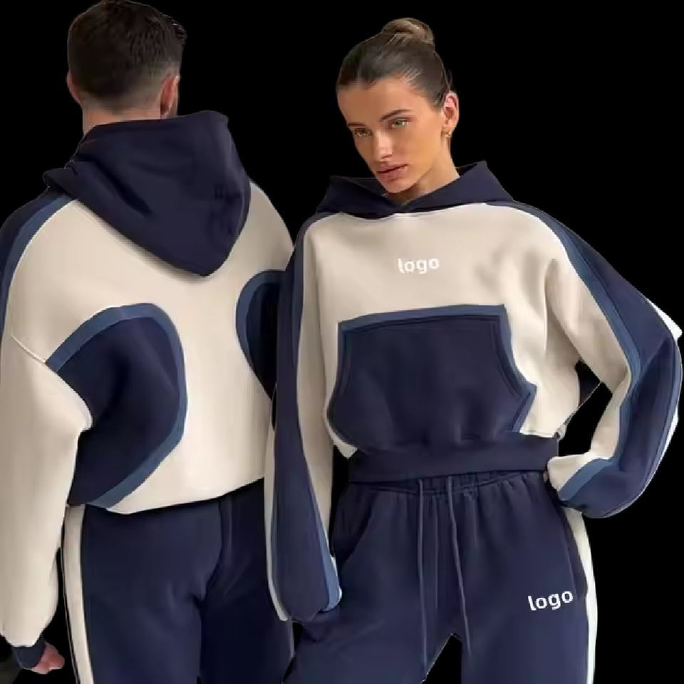 ชุดเสื้อผ้าสองชิ้นชิ้นแบบมีฮู้ดโอเวอร์ไซส์สไตล์2025ปักโลโก้ได้ตามต้องการสำหรับฤดูหนาว