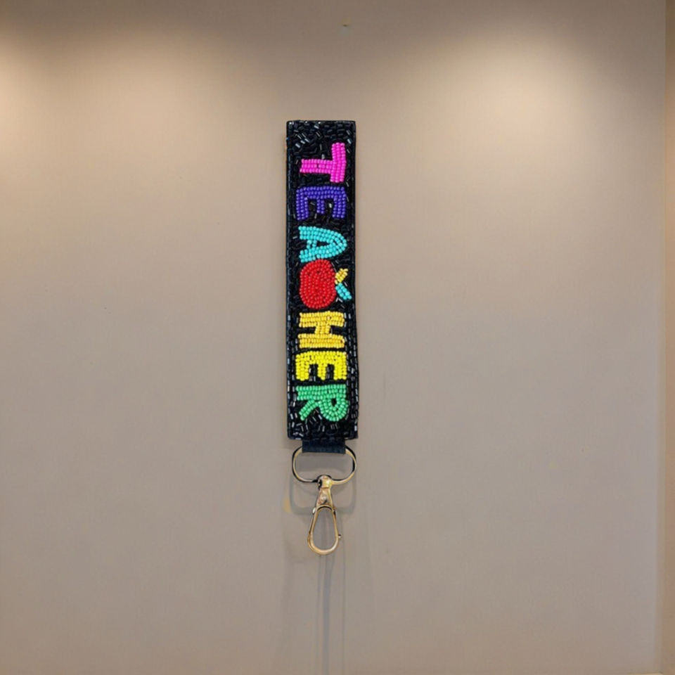 กระเป๋าและกุญแจทำด้วยมือพวงกุญแจลูกปัดตัวอักษรสีฟ้างาน2025สั่งทำพวงกุญแจกระเป๋าเครื่องประดับแฟชั่นส่วนบุคคลสำหรับกระเป๋าและกุญแจ