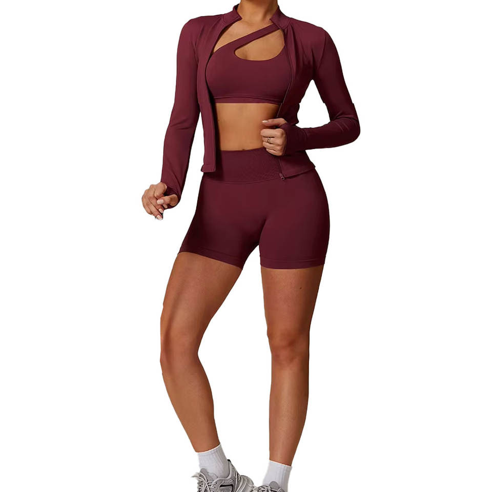 ชุดโยคะสำหรับผู้หญิงชุดออกกำลังกายกางเกงขาสั้นลายสีพื้นชุดออกกำลังกายฟิตเนสขนาดใหญ่พิเศษสำหรับผู้หญิง2025ออกแบบได้ตามต้องการ