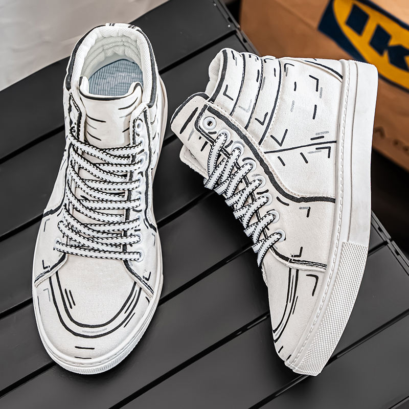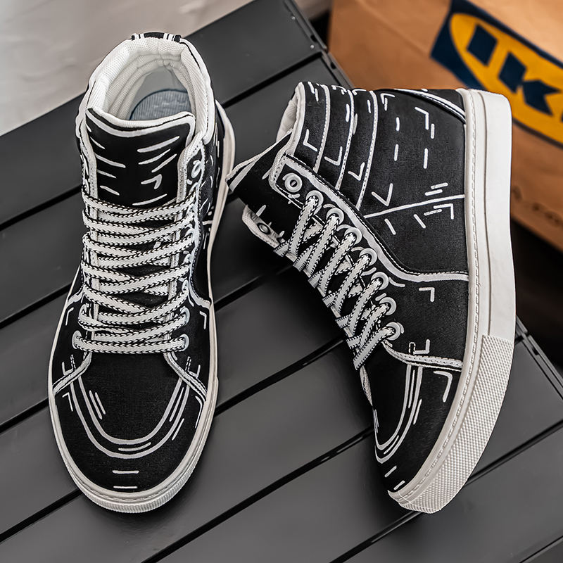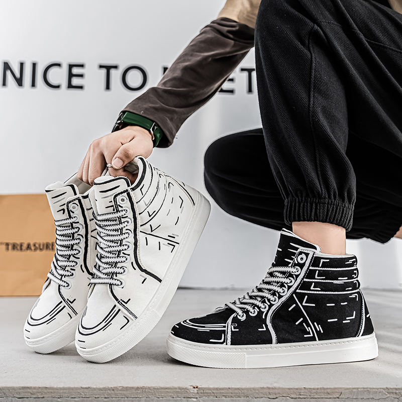 รองเท้าผ้าใบหุ้มข้อสูงแบบสั่งทำปี 2025 คุณภาพดี ไซส์ใหญ่ ดีไซน์แบบผูกเชือก สำหรับผู้ชายและผู้หญิง สไตล์เดินเท่ๆ ในราคาประหยัด