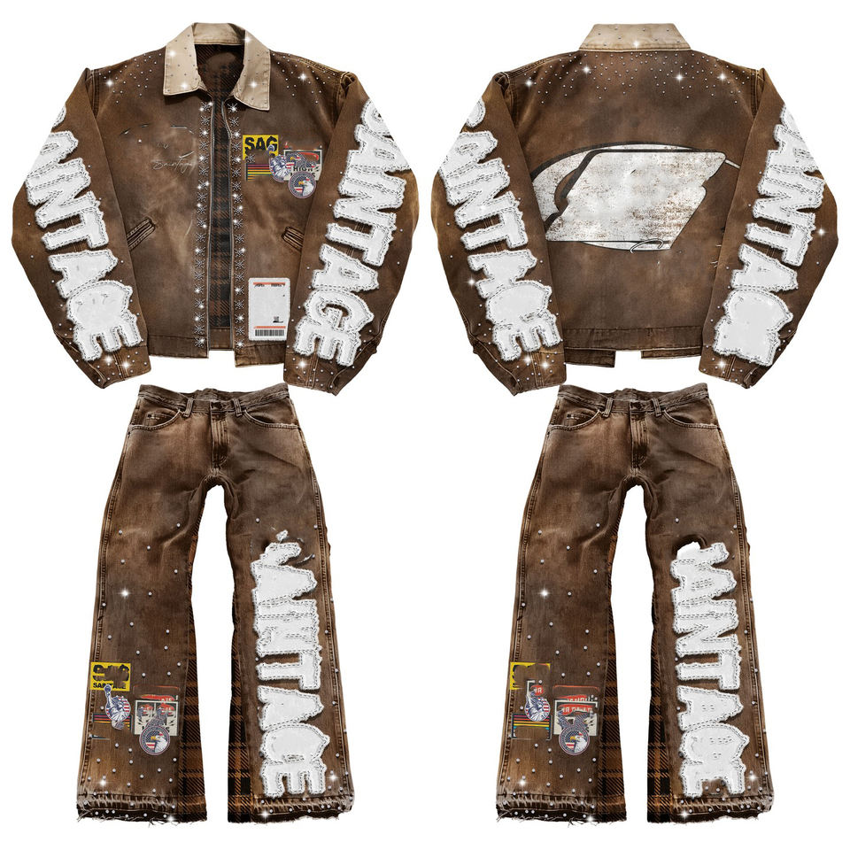 ชุดวอร์มวิ่งผู้ชายไซส์ใหญ่ ปี 2025 ปักโลโก้ด้วยเพชรเทียม กันลม พร้อมฮู้ดและกางเกงขายาว-ผ้าฝ้าย 100%