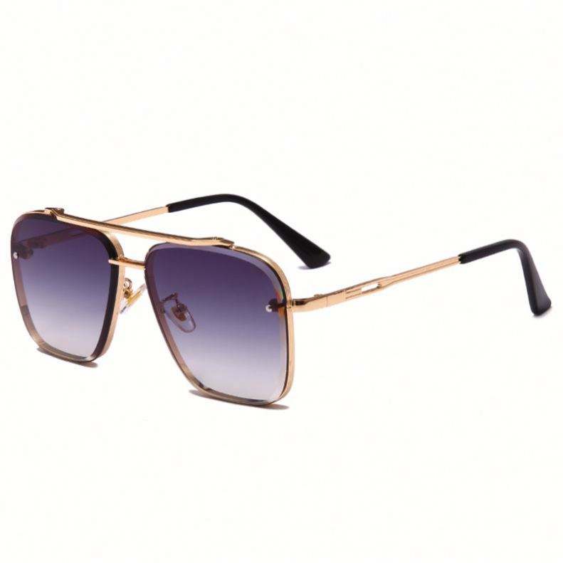 แว่นกันแดดทรงนักบินสี่เหลี่ยมแบบวินเทจโลโก้สั่งทำปี 2025 สำหรับผู้ชายและผู้หญิง กรอบโลหะ เลนส์ไล่เฉดสีน้ำตาล