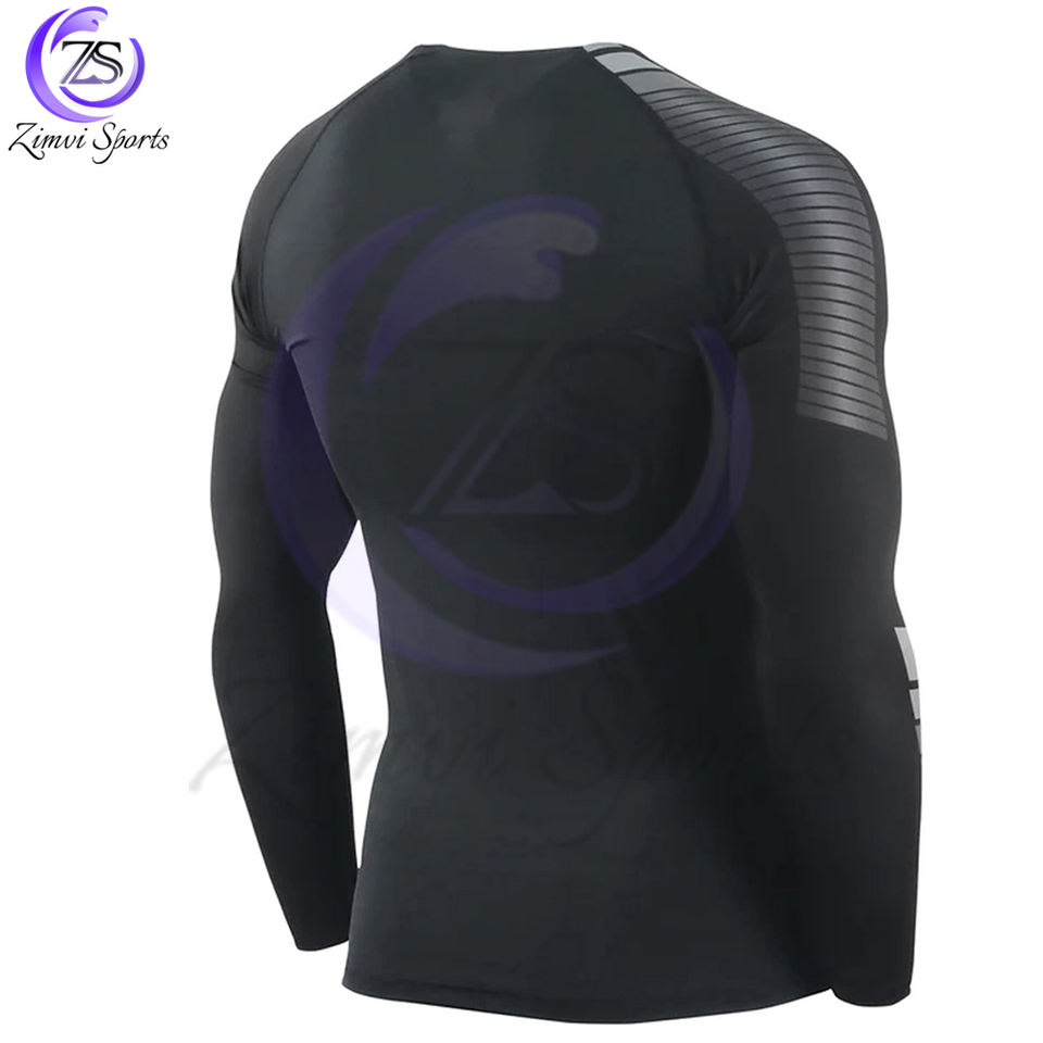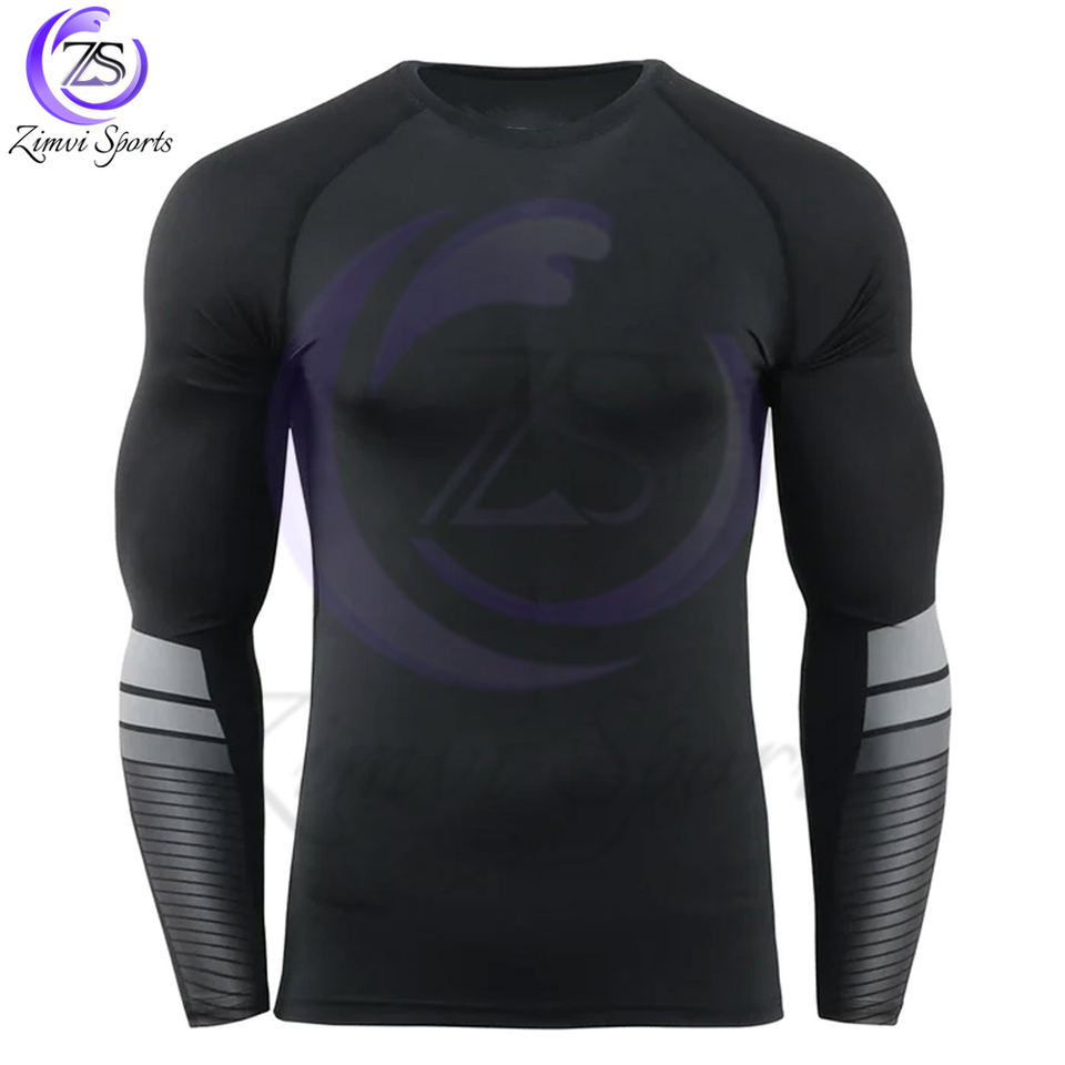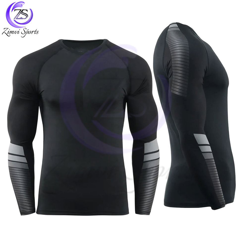ชุดกันผดผื่นแบบระบายอากาศได้สำหรับผู้ชายชุดป้องกันผื่นสำหรับฟิตเนสสีดำและสีเทา2025ผลิตตามสั่ง