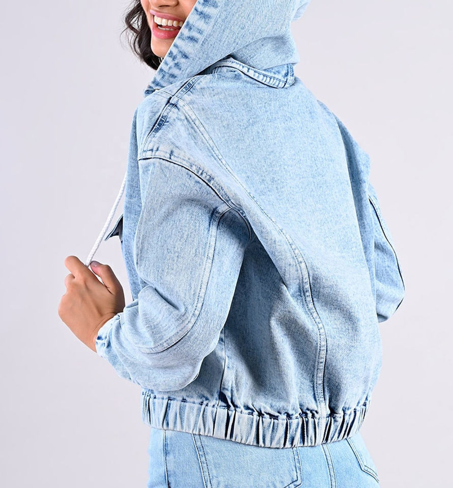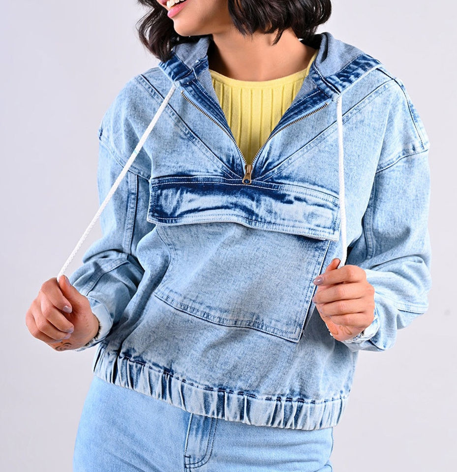 เสื้อสเวตเตอร์ผ้ายีนส์มีฮู้ดสำหรับผู้หญิงเสื้อสเวตเชิ้ตผ้าเดนิมแฟชั่นแนวสตรีทเสื้อมีฮู้ดออกแบบได้ตาม2025