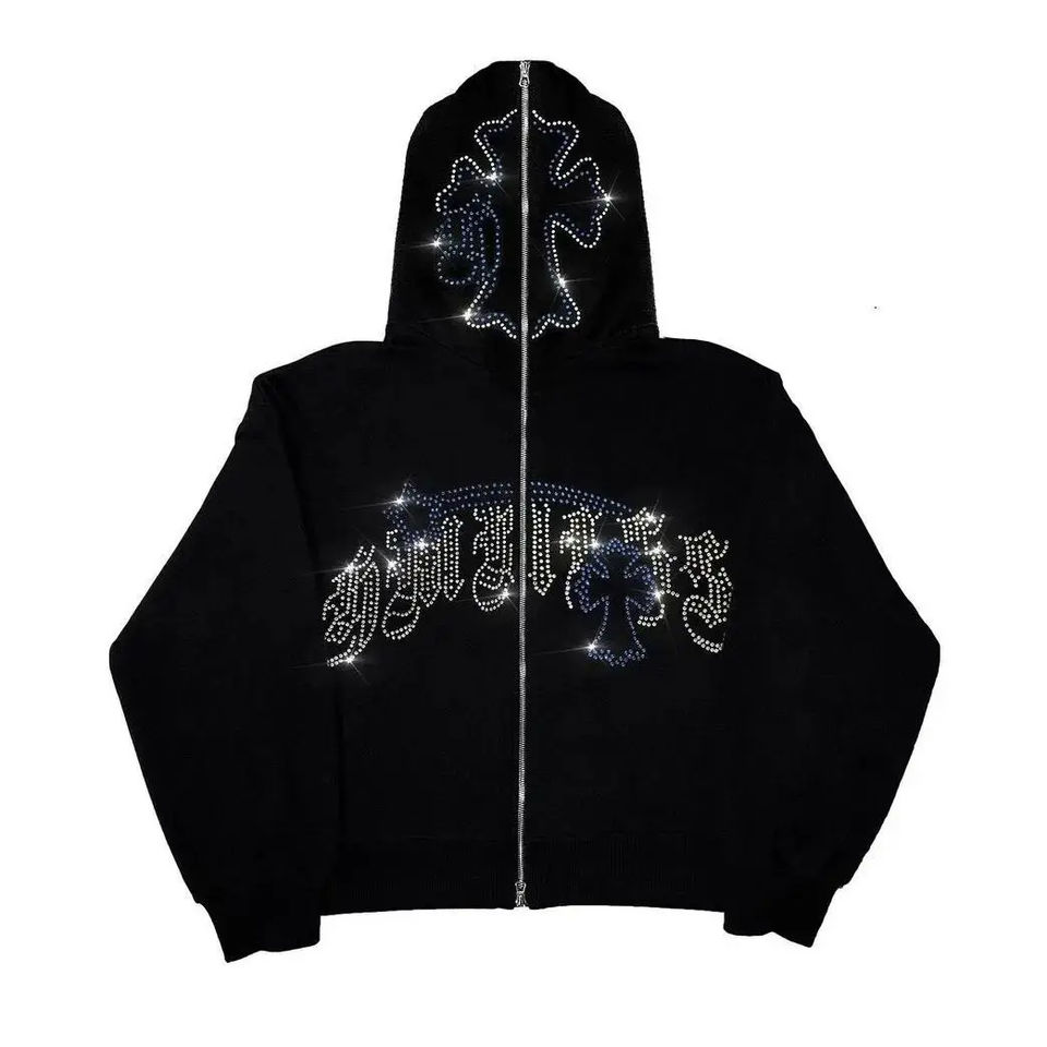 เสื้อฮู้ดสำหรับผู้ชายเสื้อฮู้ดพลอยเทียมทำเองได้สินค้าฤดูหนาว2025