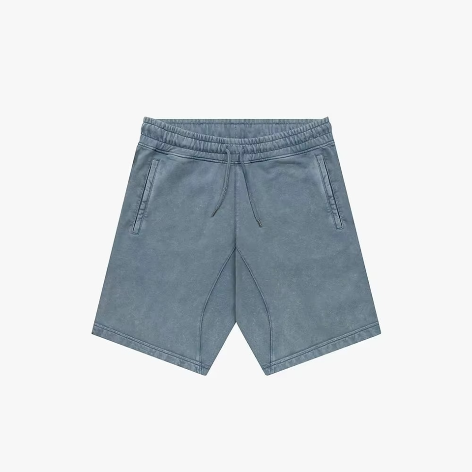 กางเกงขาสั้นผู้ชายสไตล์วินเทจย้อมสีซีดแบบทำเอง ปี 2026 ผ้าฝ้ายทรงหลวม ขอบดิบ พิมพ์ลายพัฟฟ์ กางเกงขาสั้นฟอกสีสำหรับผู้ชาย