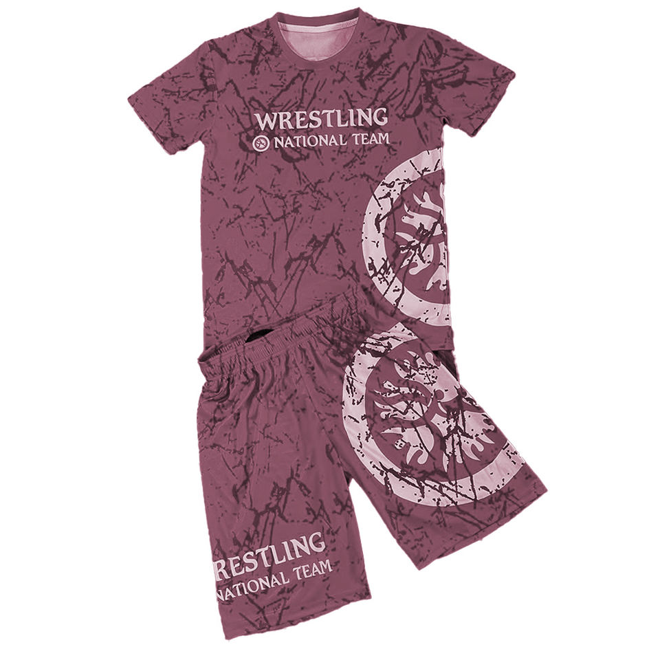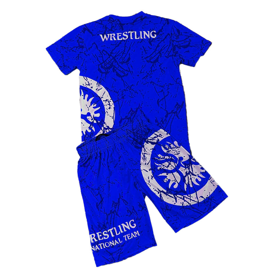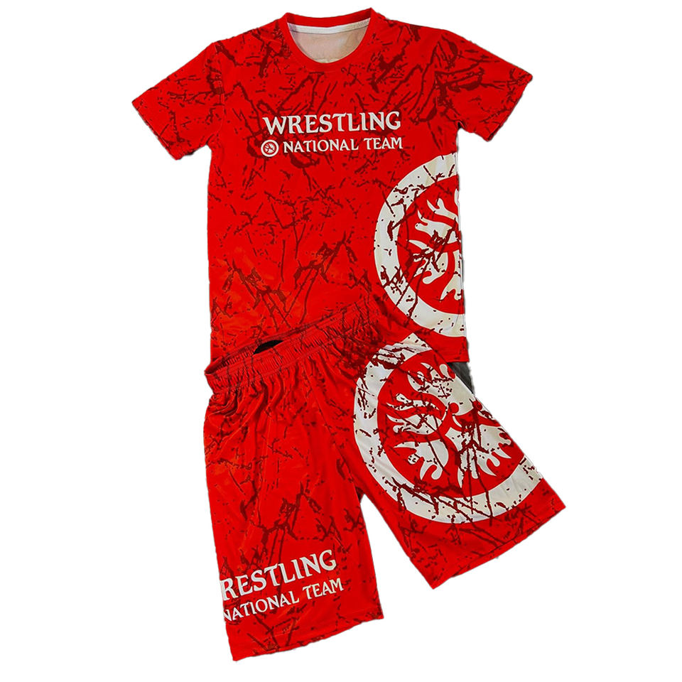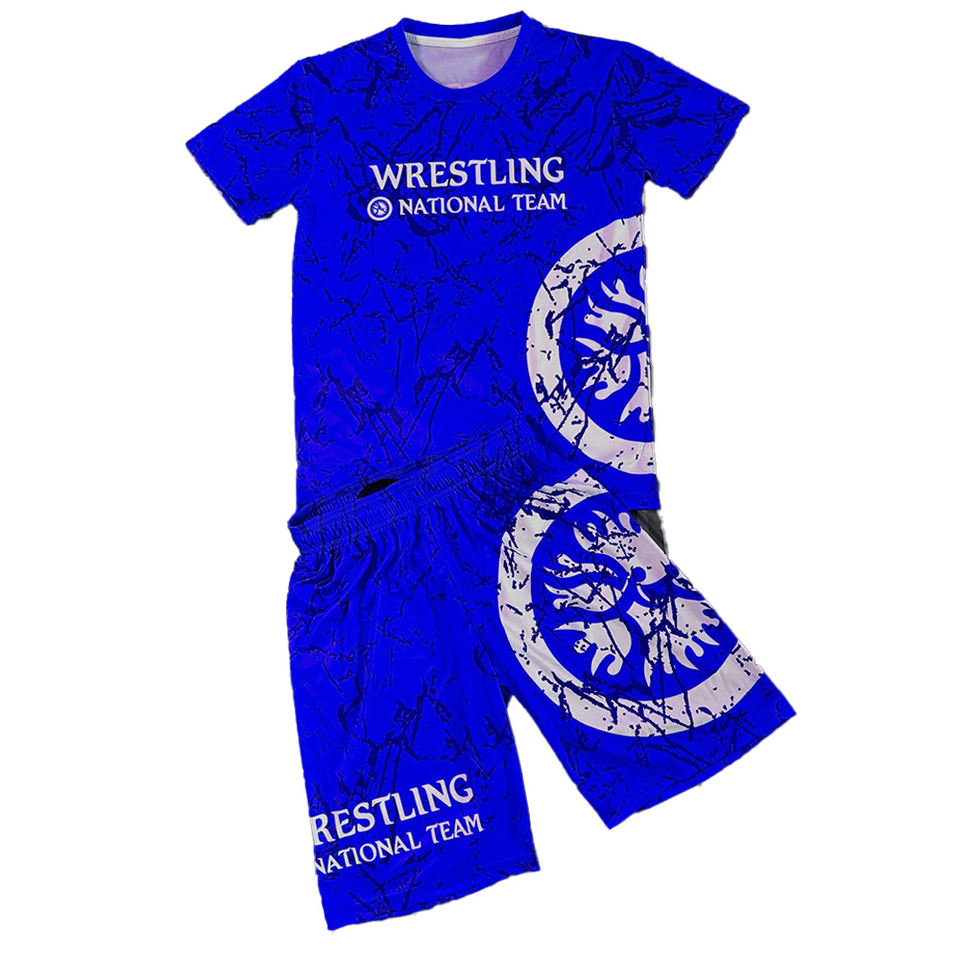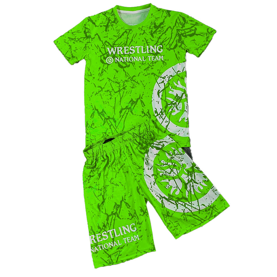 เซ็ตเสื้อ2ชิ้นสำหรับศิลปะการต่อสู้ของผู้ชายชุดเสื้อมวยปล้ำแบบถัก + กางเกงขาสั้นขนาดสากลออกแบบได้ตามต้องการสำหรับ2025