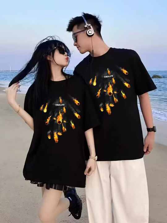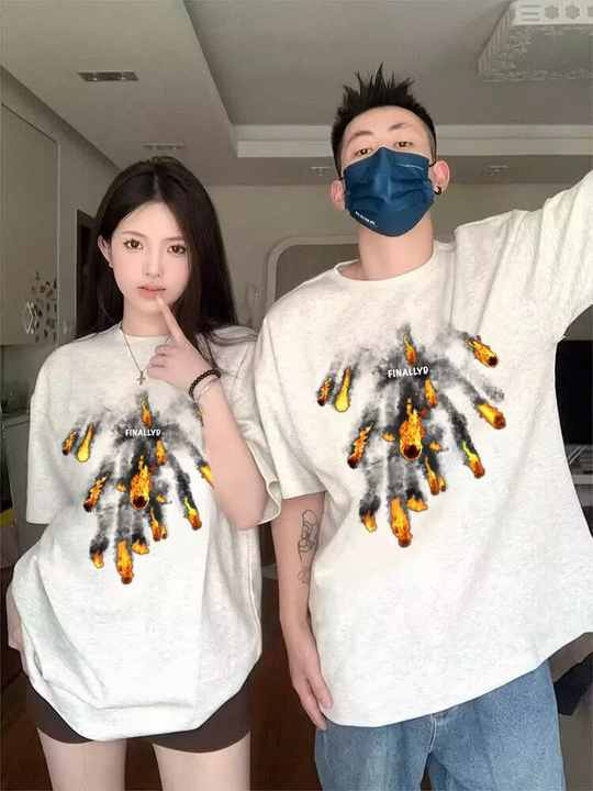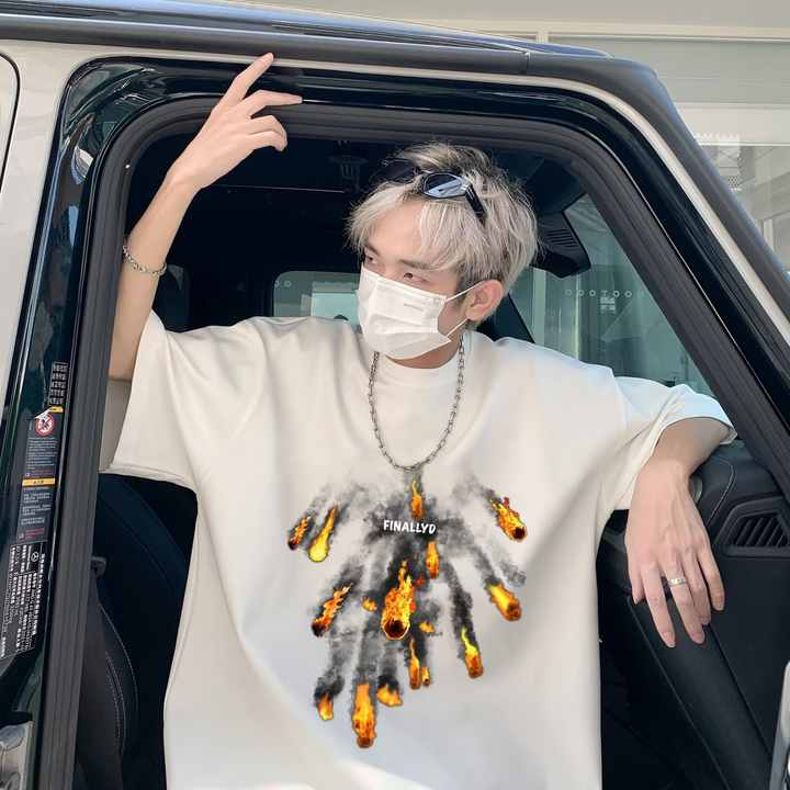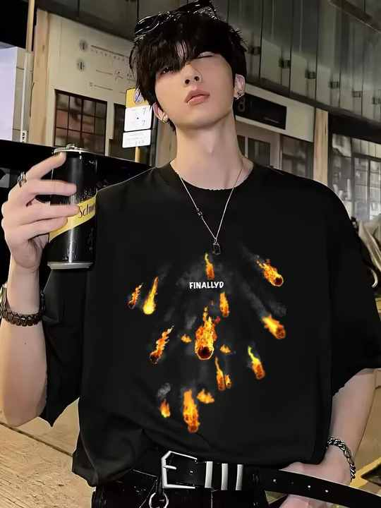 เสื้อยืดผู้ชายสไตล์ลำลองทรงหลวม คอครึ่งตัว แขนสั้น ผ้าเจอร์ซีย์ ระบายอากาศได้ดี ลายสก็อต แฟชั่นสตรีทสไตล์ ปี 2025