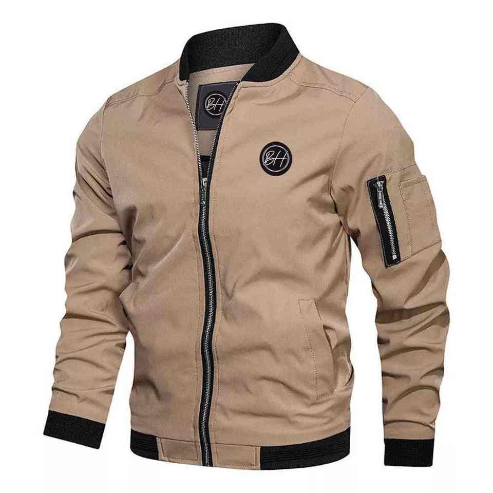 แจ็คเก็ตบอมเบอร์ผู้ชายสไตล์ไฮสตรีท ปี 2025 สำหรับฤดูใบไม้ร่วงและฤดูหนาว กันน้ำ กันลม คอตั้ง ปักโลโก้ด้านหน้า แห้งเร็ว ระบายอากาศได้ดี