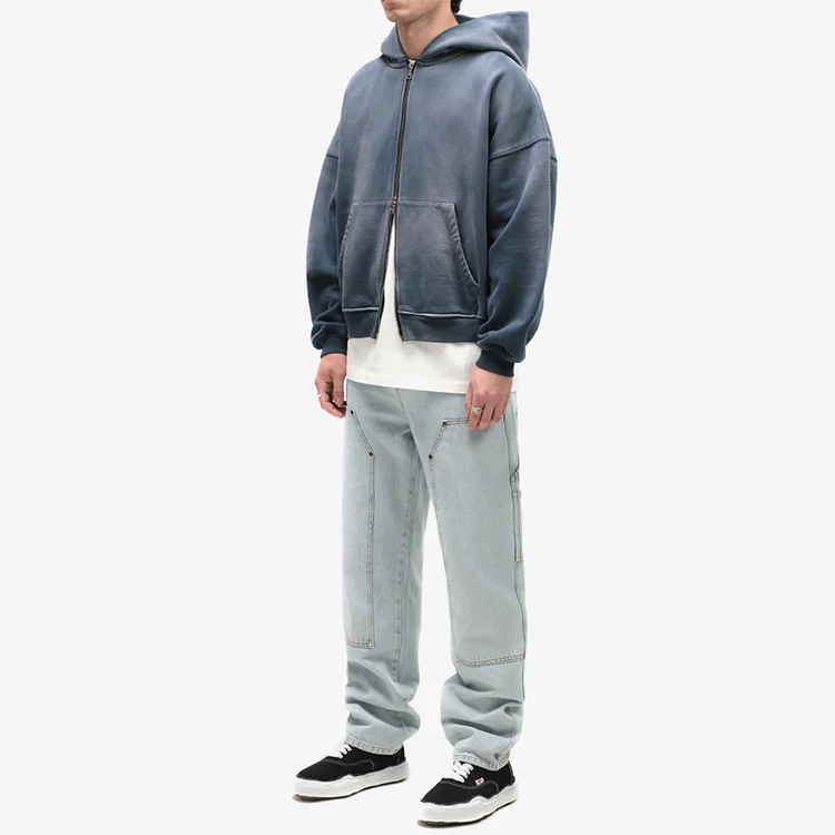 เสื้อฮู้ดดี้สตรีทแวร์ผู้ชายแบบสั่งทำปี 2025 คุณภาพสูง ผ้าฝรั่งเศสเทอร์รี่คอตตอน ซิปสองด้านแบบซีดจาง ล้างน้ำ โลโก้ด้านหน้า