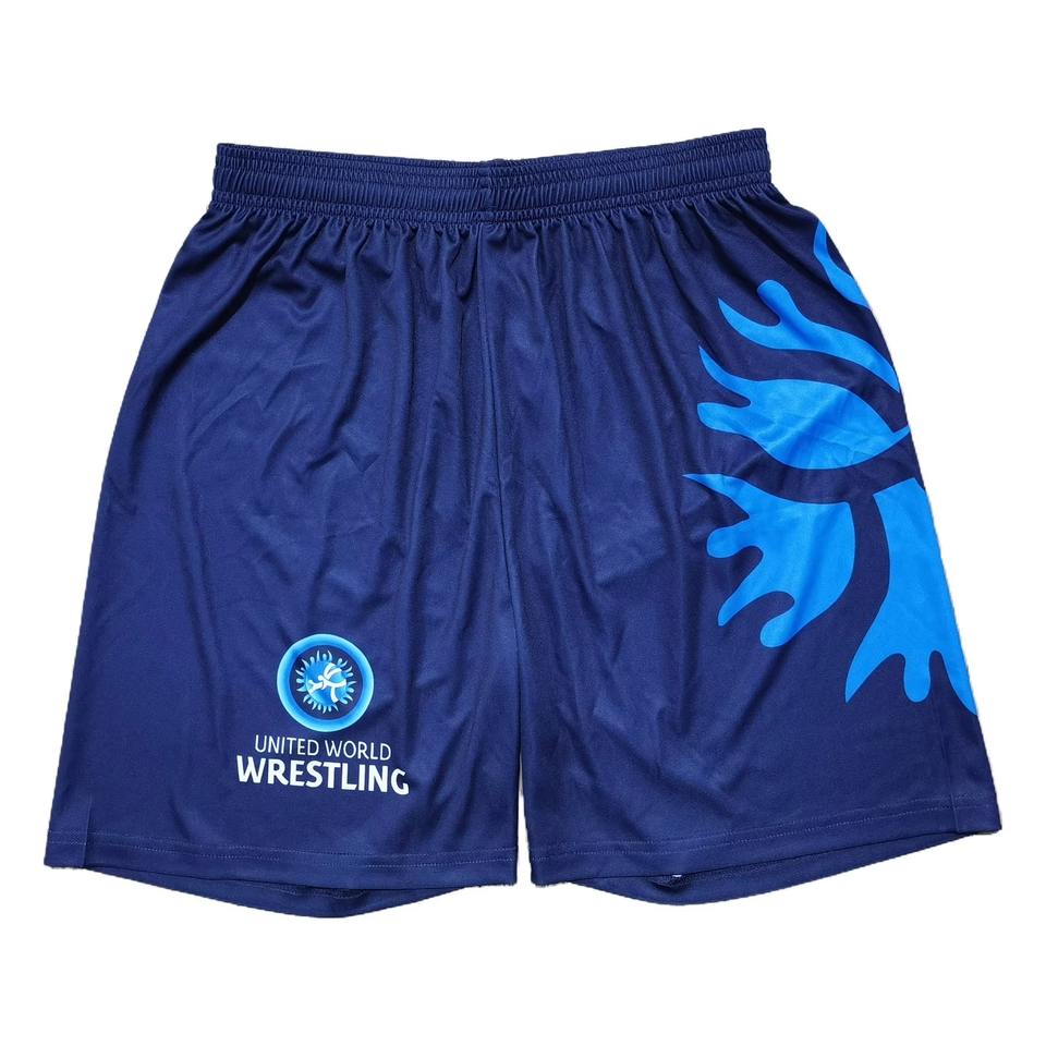 ชุดนักมวยปล้ำชายแบบถักสั่งทำพิเศษปี 2025 เสื้อยืดและกางเกงขาสั้นสองชิ้น ดีไซน์พิมพ์ลายแบบ Sublimation เต็มตัว ผลิตจากโพลีเอสเตอร์พรีเมียม 100% ระบายอากาศได้ดี แห้งเร็ว