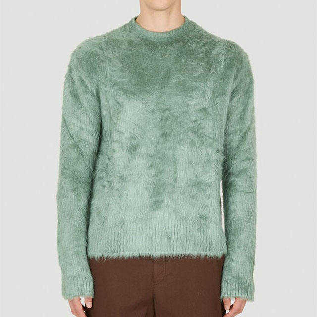 เสื้อสเวตเตอร์ขนปุยสีเขียวของผู้ชายเสื้อถักแบบสวมหัวแขนยาวผ้าขนแกะระบายอากาศได้ดี2025