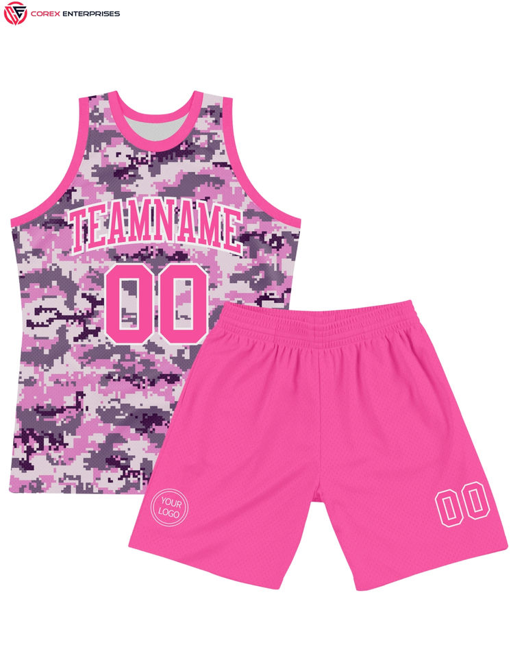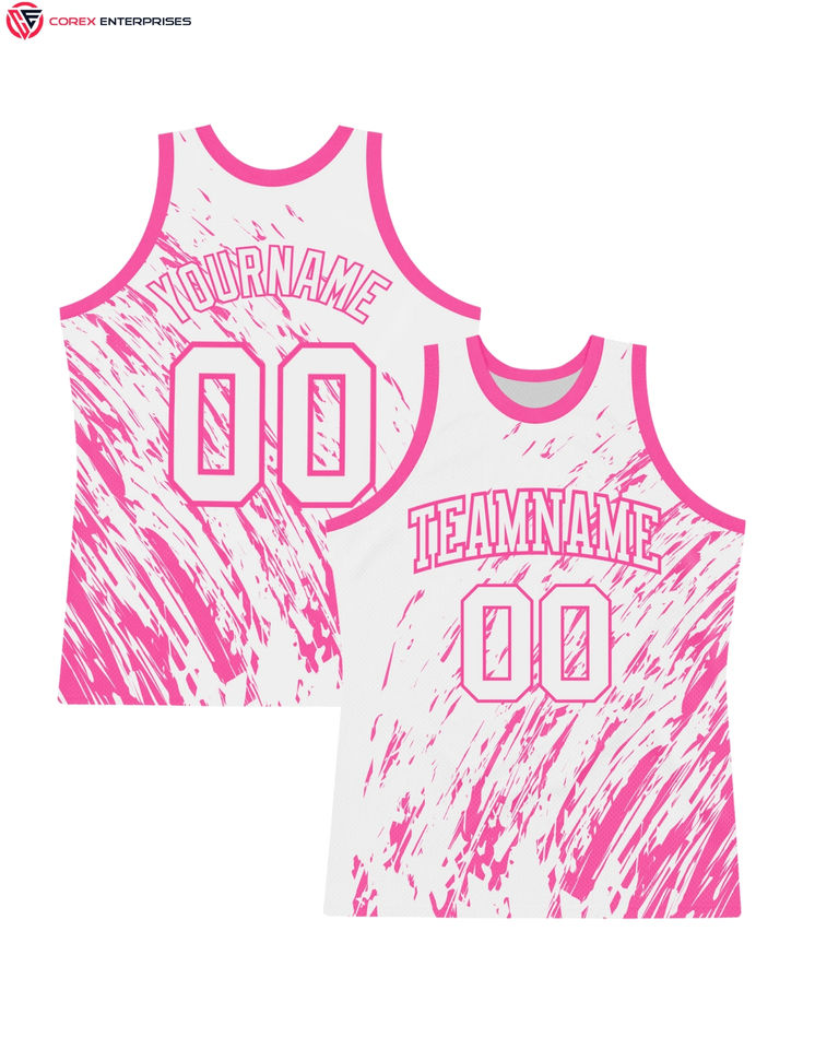 เสื้อบาสเก็ตบอลสีขาวและชมพูชุดบาสเก็ตบอลชุดบาสเก็ตบอลเสื้อบาส2025แบบมืออาชีพ