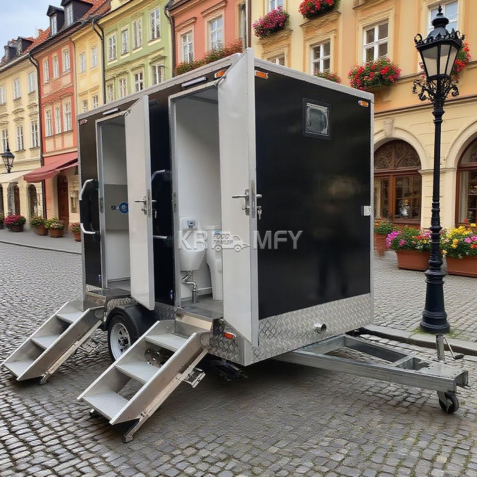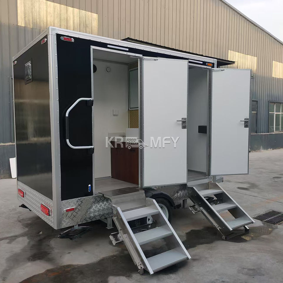 ห้องน้ำเคลื่อนที่แบบพ่วงสำหรับงานอีเว้นท์ รุ่นหรูหรา ปี 2025 สำหรับใช้งานสาธารณะ พร้อมฝักบัว ห้องสุขาเหล็ก ห้องน้ำเคลื่อนที่