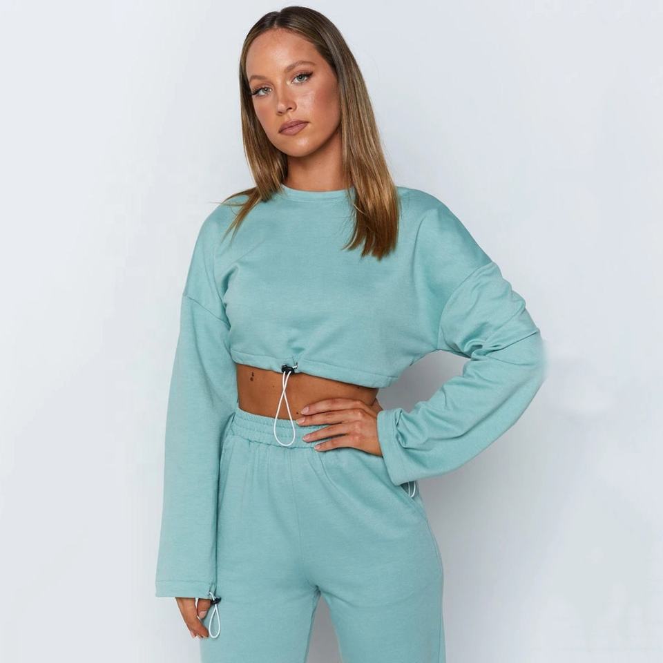 เสื้อฮู้ดครอปท็อปแบบสวมใส่สบาย พิมพ์ลายตามสั่ง ปี 2025 ขายส่งพร้อมโลโก้ตามสั่ง ชุดวอร์ม เสื้อสเวตเชิ้ตผู้หญิงทรงโอเวอร์ไซส์ ชุดเซ็ตสองชิ้น