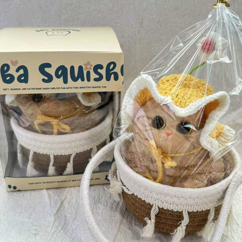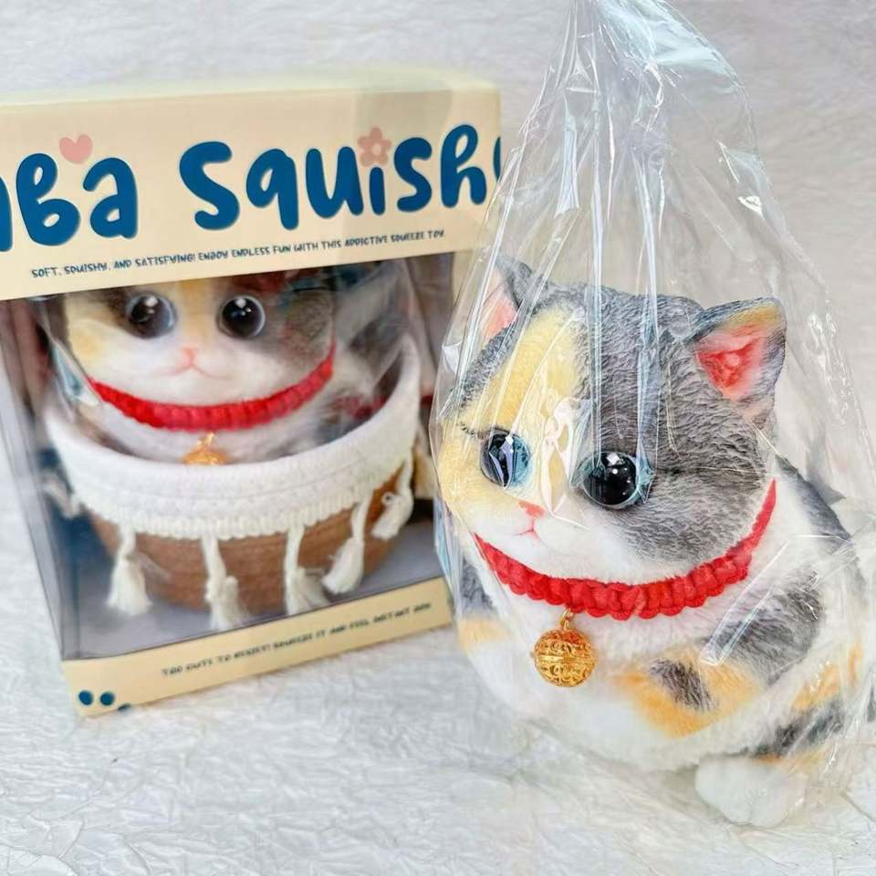 ของเล่นสกุชชี่รูปแมวน่ารัก นุ่มนิ่ม วาดด้วยมือ