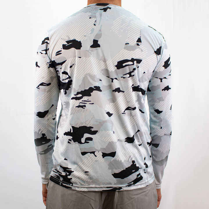 เสื้อตกปลาแขนยาวของผู้ชายเสื้อโพลีเอสเตอร์100% ระบายอากาศได้ดีแห้งเร็ว2025ชุดกีฬากลางแจ้ง UPF 50