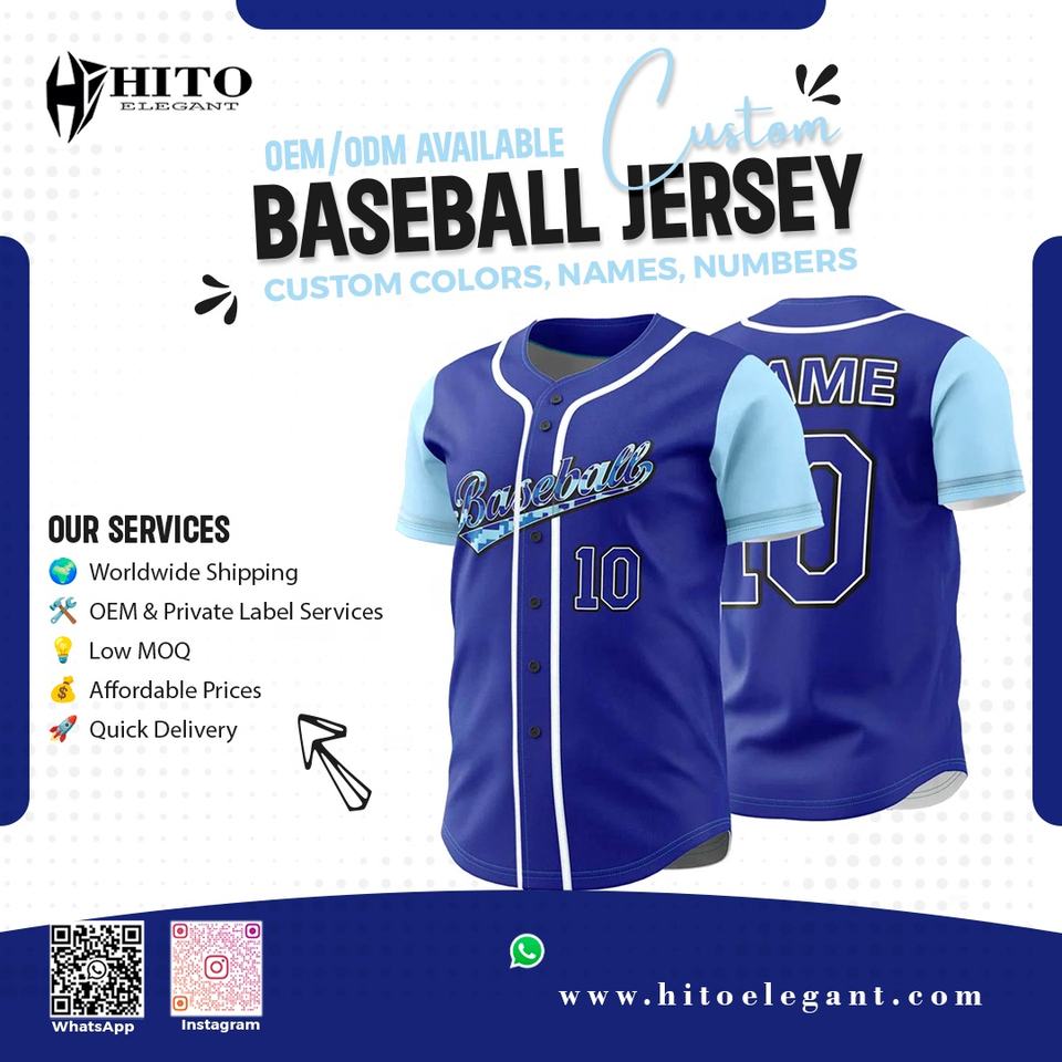 เสื้อเบสบอลคอวีเสื้อเจอร์ซีย์ระบายอากาศเสื้อเจอร์ซีย์สีฟ้าท้องฟ้าและน้ำเงิน2025โลโก้ทีมออกแบบได้ตามต้องการ