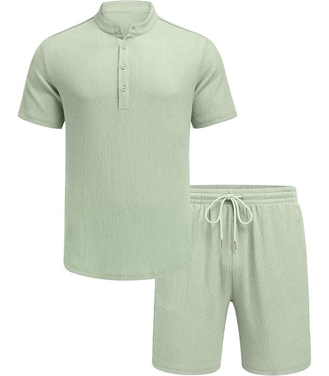 ชุดเซ็ตแทรคสูทผู้ชายสำหรับฤดูหนาวปี 2025 เสื้อเฮนลีย์แขนสั้นเนื้อผ้าพิเศษและกางเกงขาสั้นทรงหลวม ระบายอากาศได้ดี แห้งเร็ว