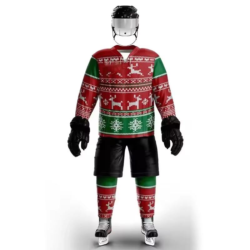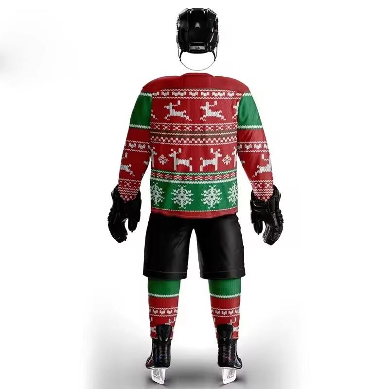 ชุดยูนิฟอร์มฮอกกี้น้ำแข็งแบบกำหนดเองสำหรับทุกเพศ ปี 2025 ลายพราง โพลีเอสเตอร์ 100% 220 กรัม แห้งเร็ว พิมพ์ลายดิจิทัล เสื้อทีม ขายส่งพร้อมโลโก้