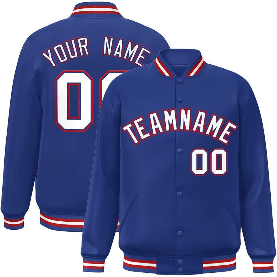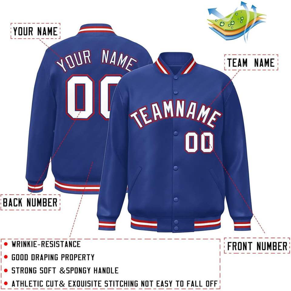 แจ็คเก็ตเบสบอลแบบวาร์ซิตี้สั่งทำปี 2025 สำหรับผู้ใหญ่และเยาวชน เสื้อโค้ททรงบอมเบอร์แบบมีซิปสำหรับเล่นกีฬา พร้อมปักชื่อทีมและหมายเลข ไซส์ XS ถึง XL