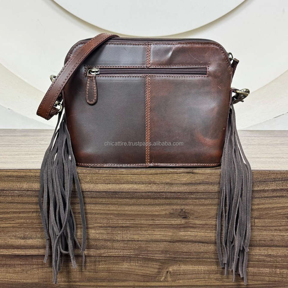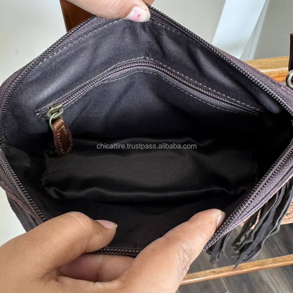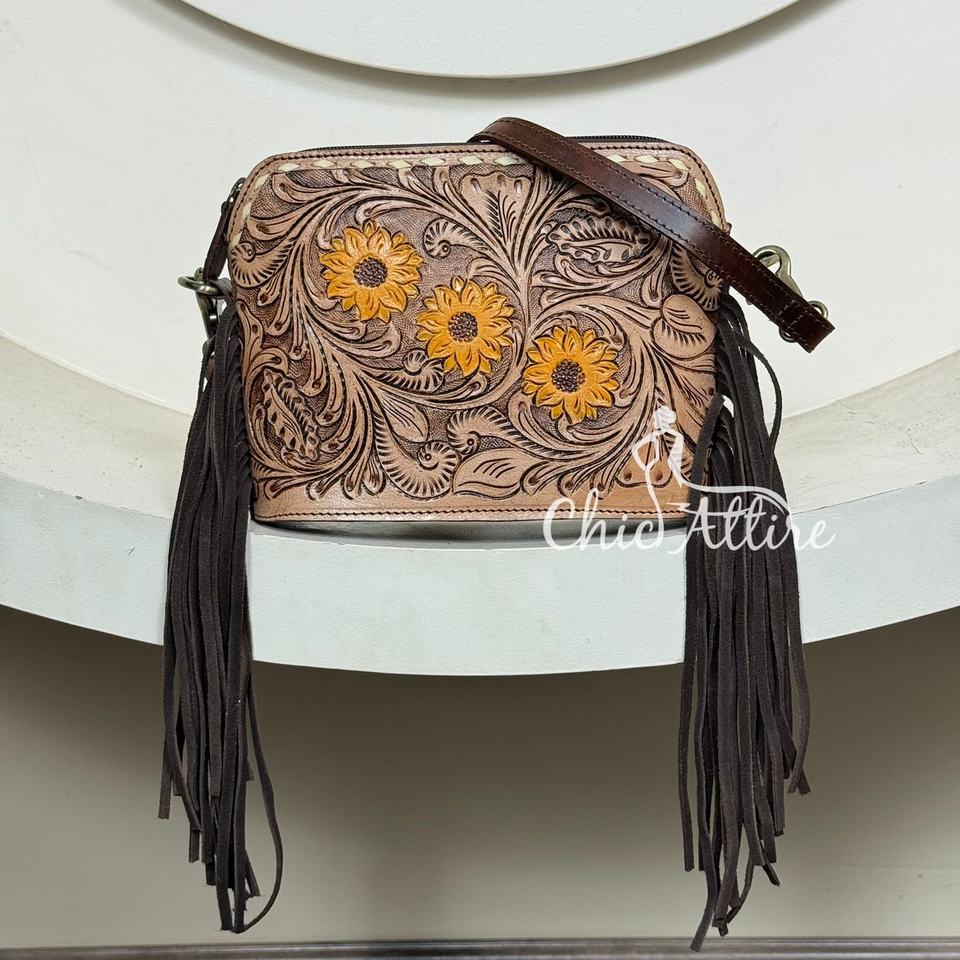 Product name:Hand Tooled Leather Sunflower Crossbody Fringe Bag