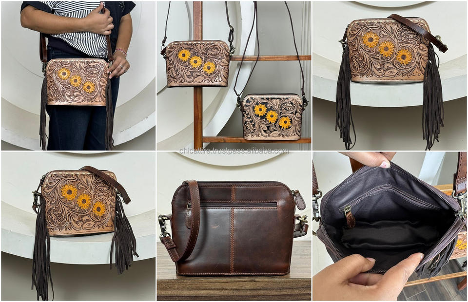 กระเป๋าสะพายข้างหนังวัวประดับเครื่องมือสไตล์วินเทจสำหรับสตรี2025ได้ตามต้องการกระเป๋าสะพายข้างทำจากหนังลายดอกทานตะวัน