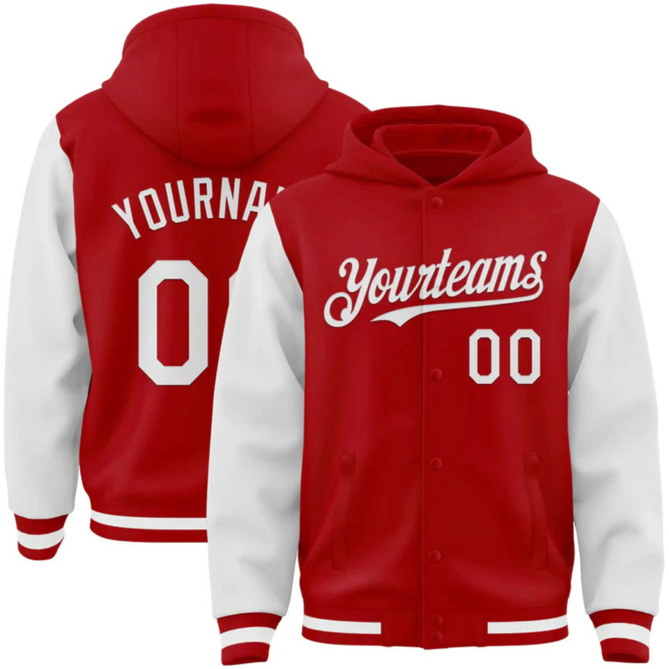 2025 Custom Wholesale Men Team Hoodie High Quality Sports 100% Polyester For Full Sublimation Print Hoodie Red & White Colour
