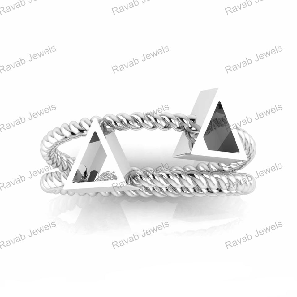 เครื่องประดับงานประดิษฐ์ทำด้วยตัวเองของผู้หญิง2025เครื่องประดับหินขี้เถ้าชุดฝาทอง18K แหวนเชือกอินเทรนด์ส่วนประกอบทรงสามเหลี่ยม