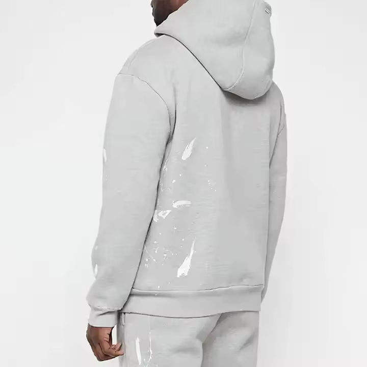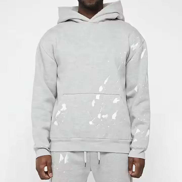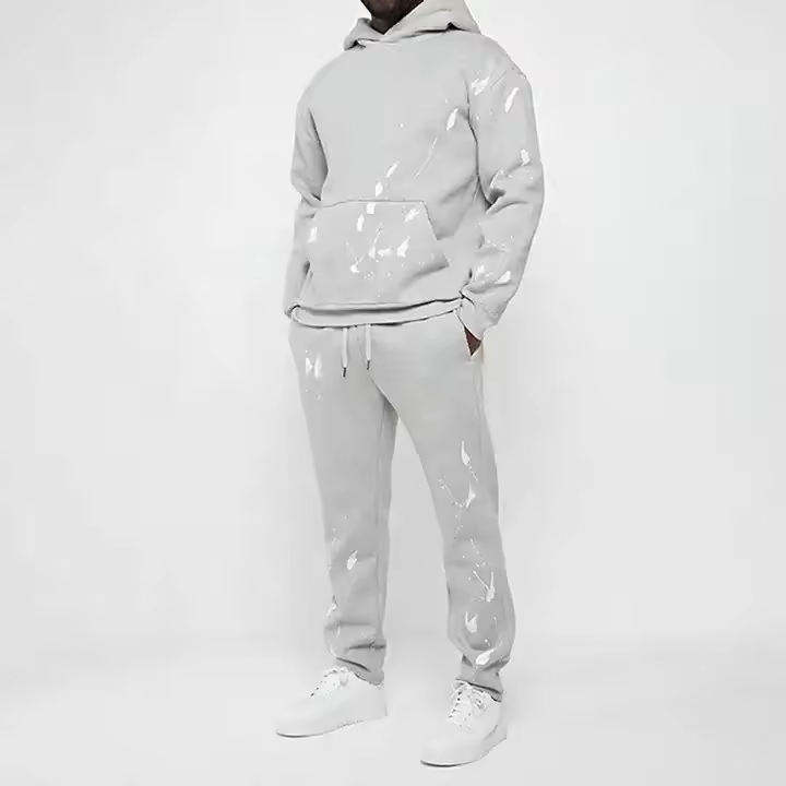 ชุดเซ็ตแทรคสูทผู้ชายแบบมีฮู้ดเต็มตัว ปี 2025 รุ่นสั่งทำพิเศษสำหรับเพ้นท์ลาย ฮิปฮอป สตรีทแวร์ ไซส์ใหญ่ สำหรับฤดูหนาว ผ้าหนา ย้อมสีด้วยมือ