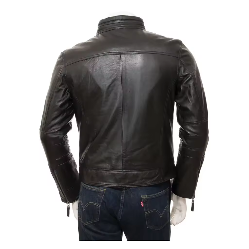 แจ็กเก็ตหนังแกะแท้สำหรับผู้ชายเสื้อแจ็คเก็ตนักขี่จักรยานหนังแท้สำหรับ2025