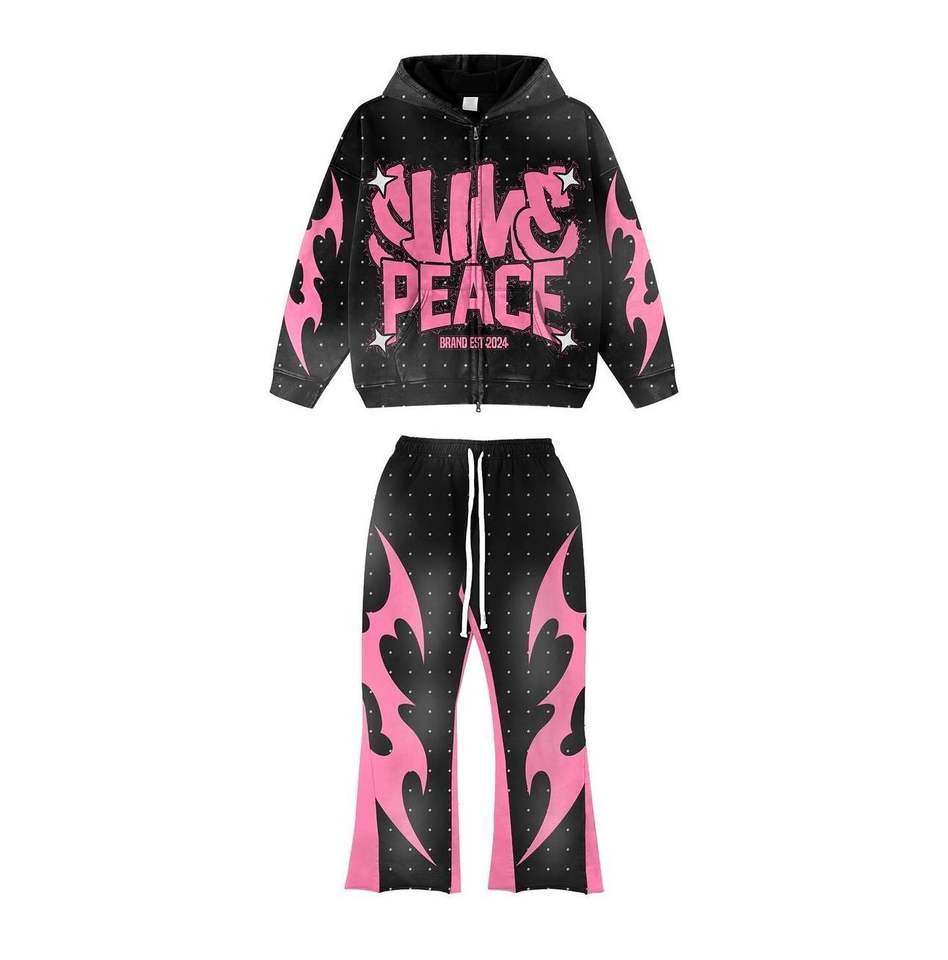 กางเกงลายทางด้านข้างปรับแต่งได้2025น้ำหนักเบาดีไซน์แฟชั่นฤดูหนาวพร้อมชุดวอร์มประดับพลอยเทียมการพิมพ์สกรีน