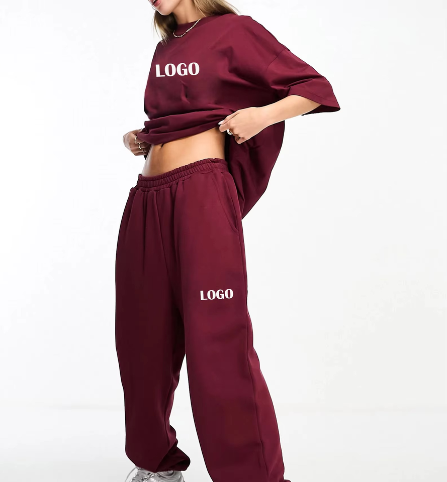 2025เสื้อยืดมีฮู้ดและกางเกงโอเวอร์ไซส์สำหรับผู้หญิงชุดวอร์มผ้าคอตตอนมีโลโก้ออกแบบได้ตามต้องการ
