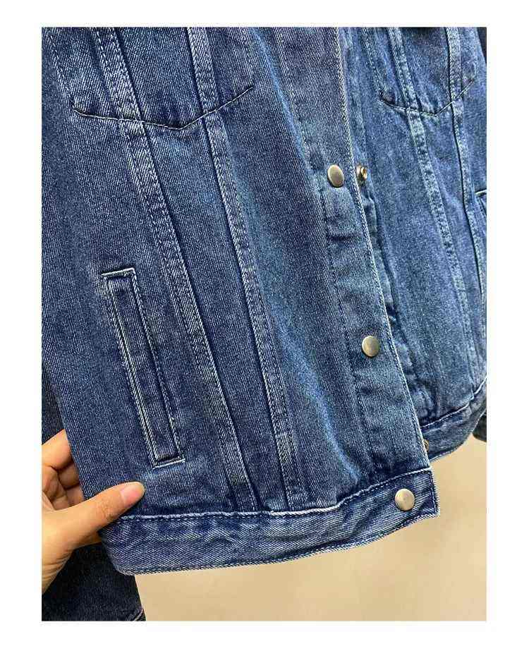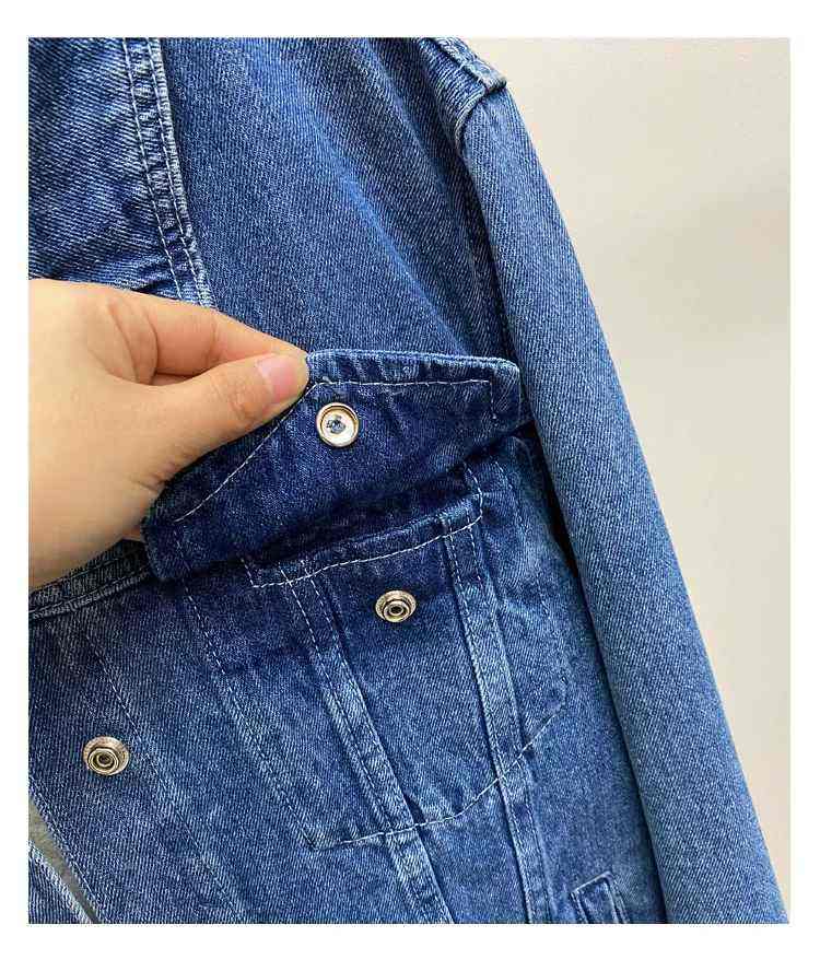แจ็กเก็ตยีนส์คอตตอน100% ของผู้หญิงแจ็กเก็ตกระเป๋าสีพื้นลำลองสำหรับเสื้อผ้าฤดูใบไม้ผลิ