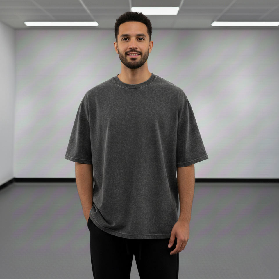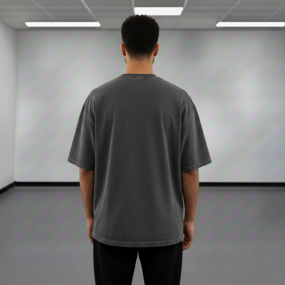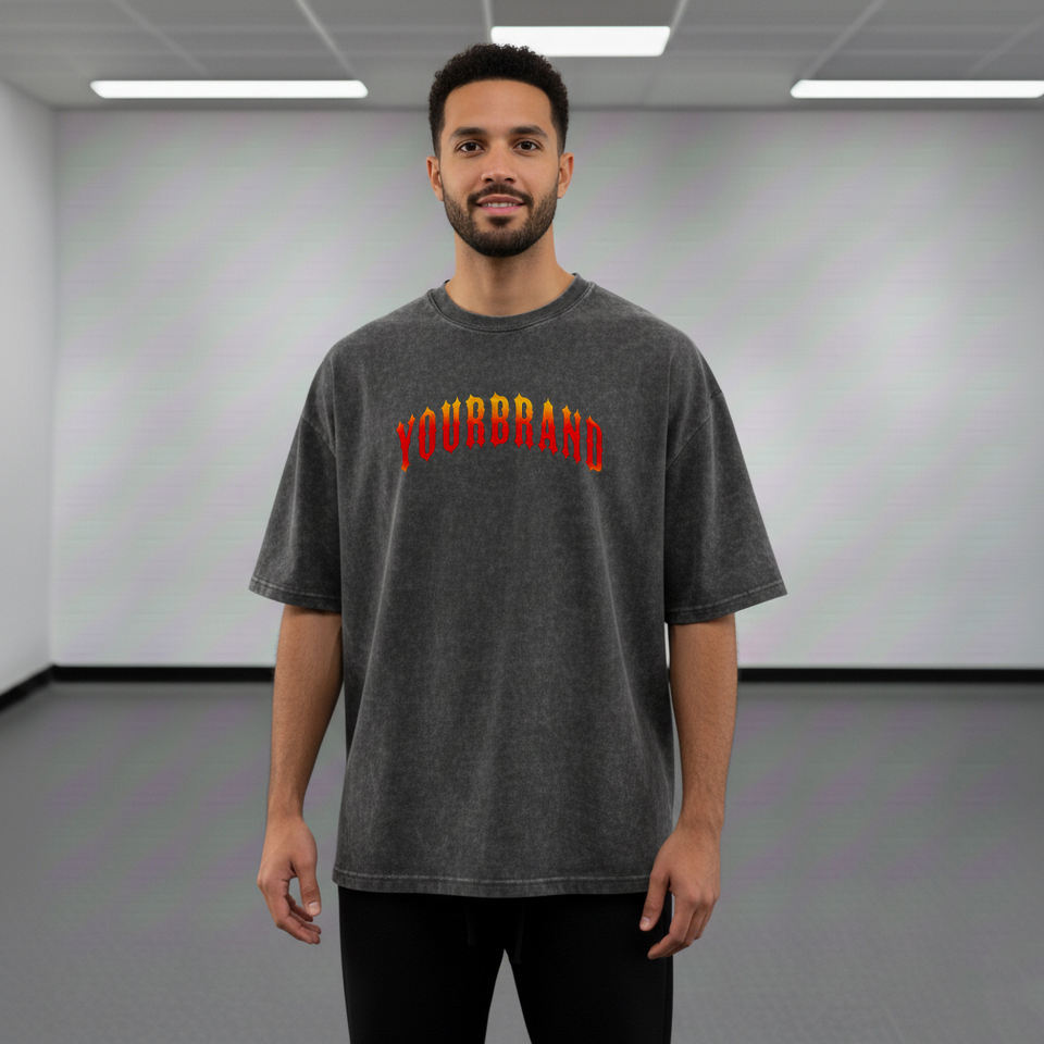เสื้อยืดผู้ชายผ้าฝ้ายแท้ 100% ทรงหลวม ล้างสีแบบแอซิดวอช พิมพ์โลโก้แบบนูน 3 มิติ ผ้า Worsted รุ่นปี 2025 แบบสั่งทำพิเศษ