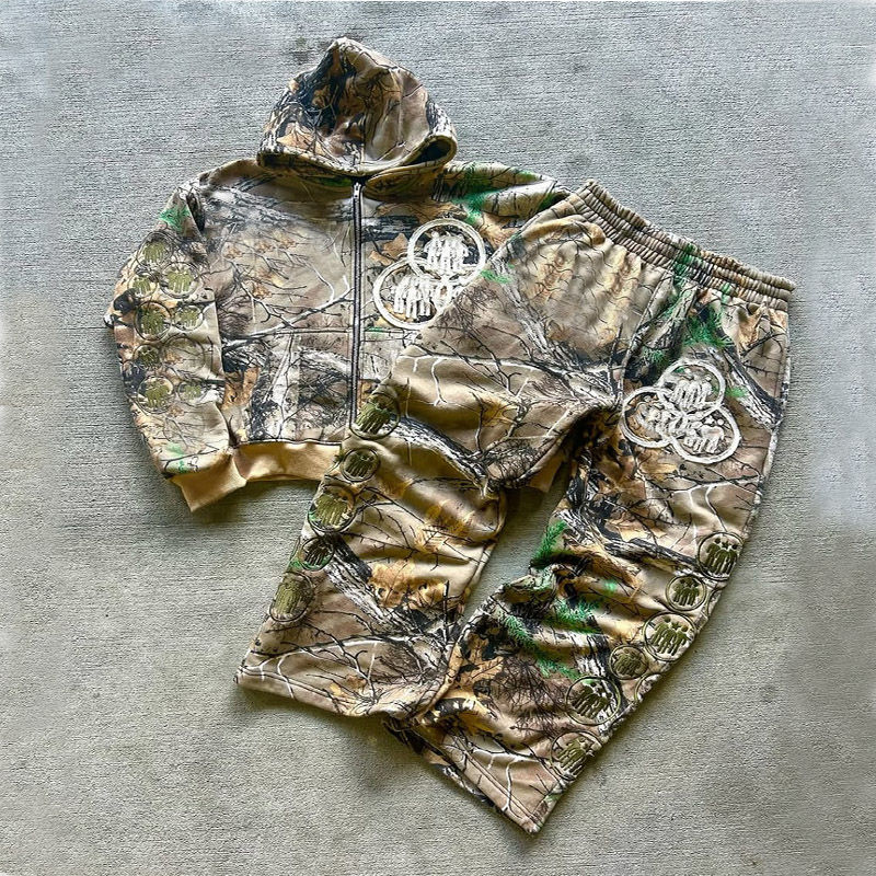 2025 100% ผ้าโพลีเอสเตอร์ปักลายด้วยความสุขชุดวอร์มลายพรางชุดวอร์มลำลองผ้าฟลีซแบบ2 in 1ใช้ได้ทั้งชายและหญิง