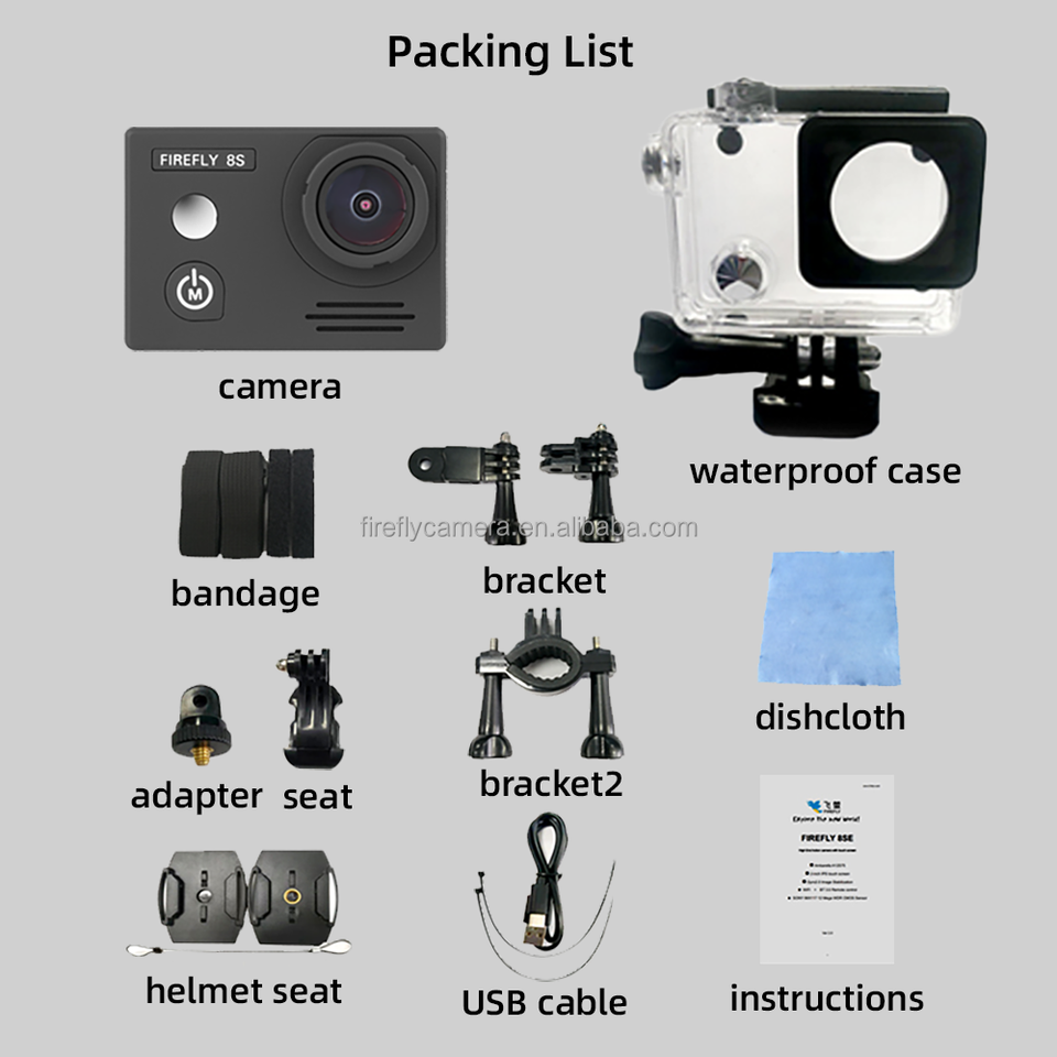 กล้องแอคชั่นสปอร์ต 4K รุ่นปรับแต่งปี 2025 สำหรับกิจกรรมเอ็กซ์ตรีม ติดหมวกกันน็อคมอเตอร์ไซค์ 60fps พร้อม WiFi กันน้ำ หน้าจอสัมผัส มุมกว้าง