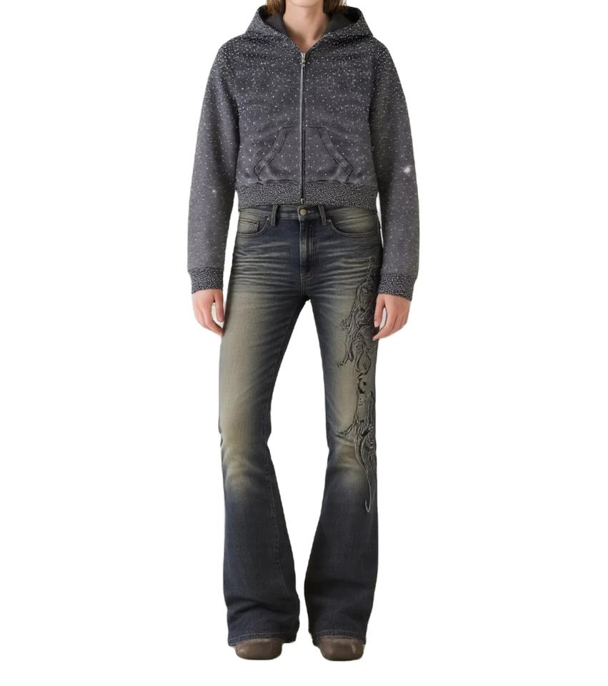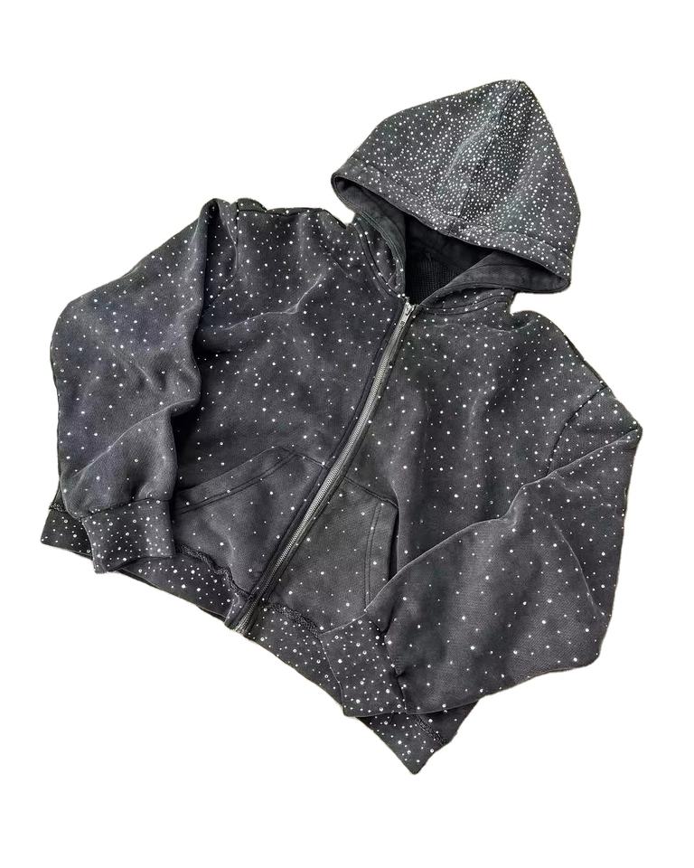 เสื้อฮู้ดดี้สไตล์วินเทจทรงโอเวอร์ไซส์ ผ้าคอตตอนหนานุ่ม ล้างสีแบบแอซิด ตกแต่งด้วยคริสตัล สำหรับฤดูใบไม้ร่วง ปี 2025 แบบสตรีทแวร์ ดีไซน์ขาดๆ สำหรับทุกเพศ