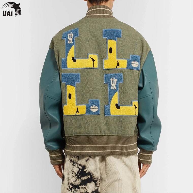 เสื้อแจ็กเก็ตเลตเตอร์แมนสำหรับผู้ชายงานปักที่แขนหนังผ้าฝ้าย100% ขนสัตว์ด้านหน้าคุณภาพสูงสำหรับฤดูใบไม้ร่วงและฤดูหนาว2025งานตามสั่ง
