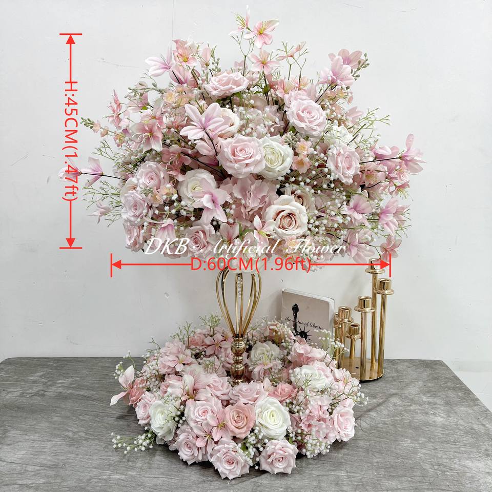 ลูกบอลดอกไม้ประดิษฐ์สีชมพูและสีขาว2025 DKB ลูกบอลดอกไม้ประดิษฐ์ลูกบอลดอกไม้ขนาด60ซม. สำหรับงานแต่งงาน