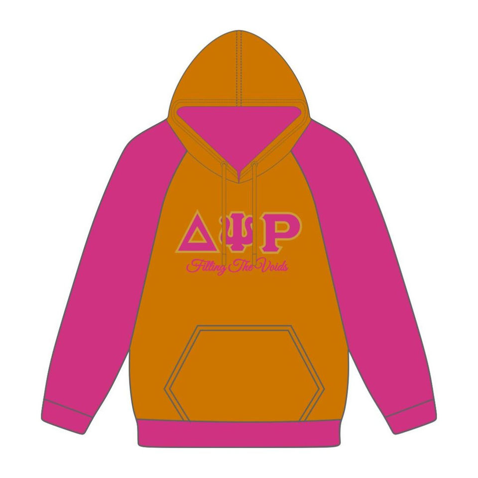 2025 Delta PSI Rho เสื้อแขนยาวเสื้อแขนยาวมีฮู้ดแบบสวมหัวสีทอง80คอตตอน20โพลีเอสเตอร์เติมช่องว่างเสื้อผ้าลำลองสำหรับชีวิตชาวกรีก