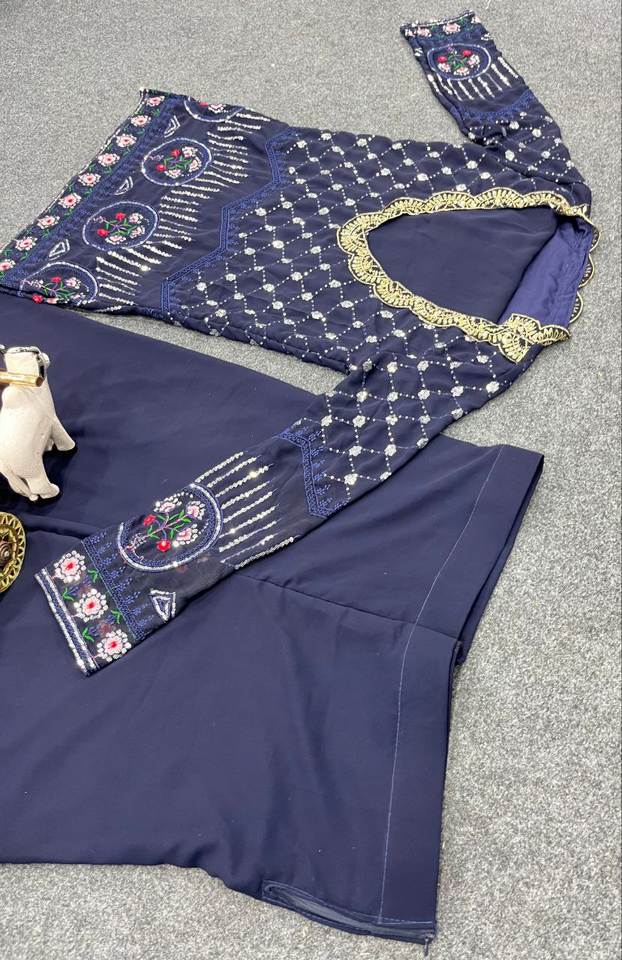 ชุดสلوارคามีซผ้าจอร์เจตต์ดีไซน์เนอร์ปี 2025 คุณภาพเยี่ยม ปักเลื่อมลายแฟนซี สำหรับงานบอลลีวูด ฤดูร้อนและฤดูใบไม้ร่วง