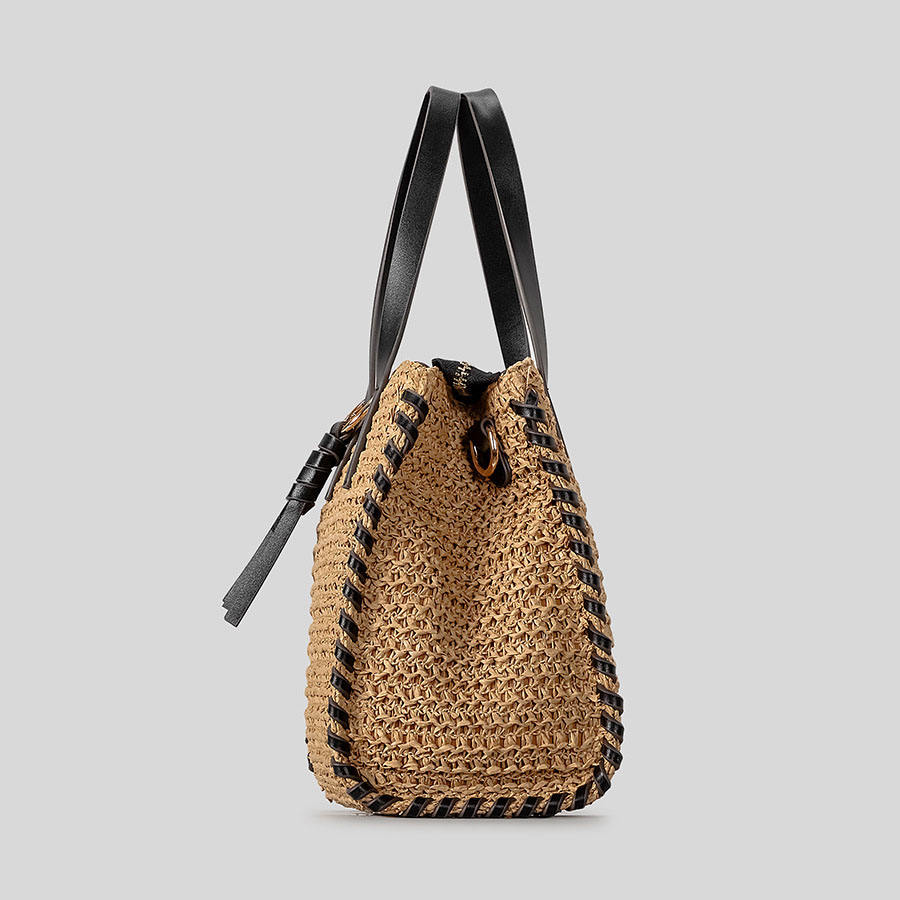 2025 Designer Hand-Woven PP Straw Summer/Spring Beach Bag Women Large Capacity Color Blocking Shoulder Tote Zipper Custom