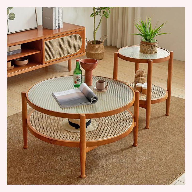 โต๊ะกาแฟหวายทำด้วยมือดีไซเนอร์2025พื้นผิวไม้ระดับพรีเมียมน้ำหนักเบาและอเนกประสงค์เหมาะสำหรับการตกแต่งภายในที่ทันสมัย