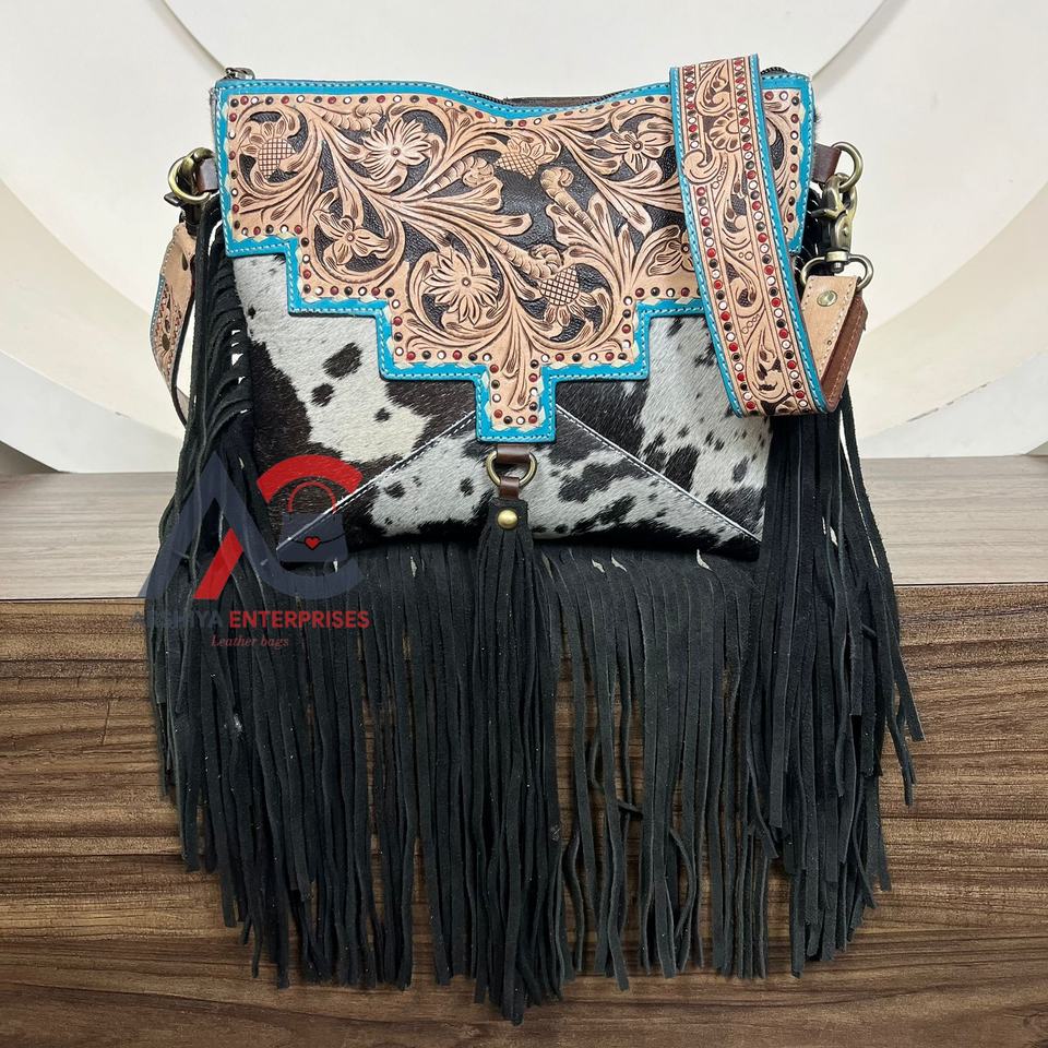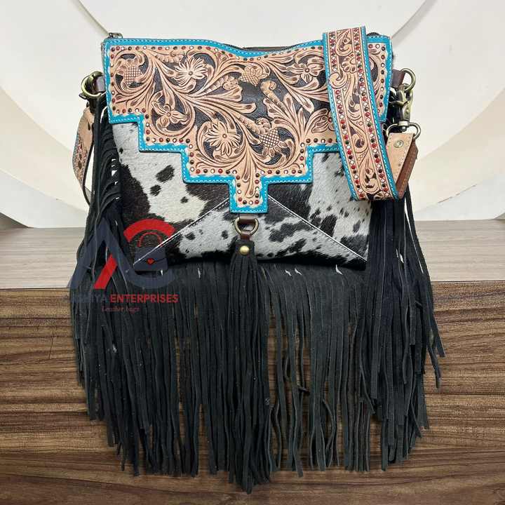 Product name:Hand Tooled Cowhide Leather Crossbody Bag
