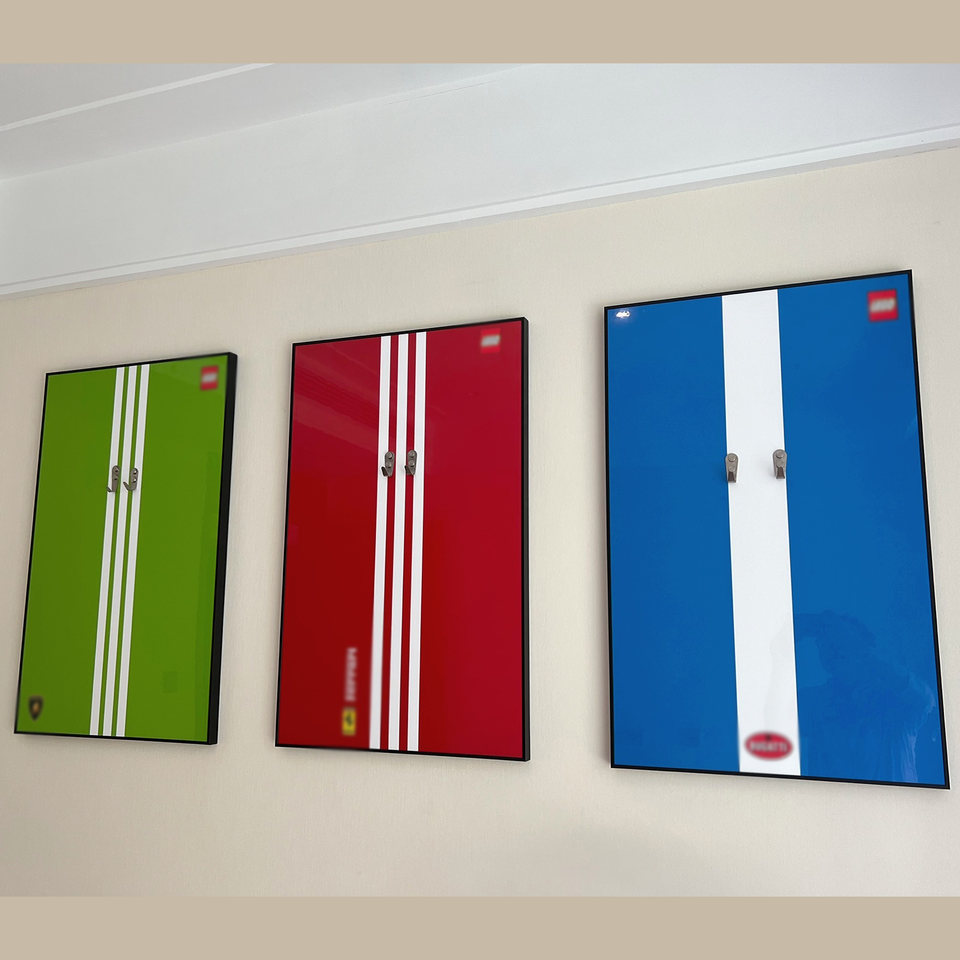 กรอบโลหะติดผนังสำหรับจัดเก็บโมเดลรถแข่งซูเปอร์เร็ว ปี 2025 สำหรับติดตั้งบล็อกตัวต่อและรูปถ่าย