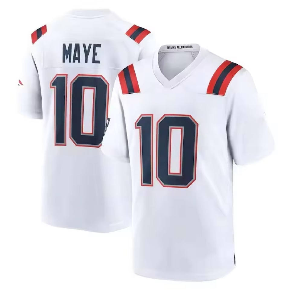 เสื้อฟุตบอลทีม NE รอบแรก ดราฟต์ 2025 หมายเลข 10 เดเร็ก เมย์ หมายเลข 12 เบรดี้ หมายเลข 8 ดิกส์ แบบเย็บติดชื่อผู้เล่น