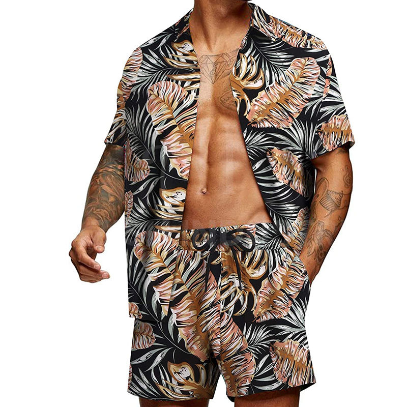 จัดส่ง2025ชุดสูทแขนสั้นของผู้ชายกางเกงขาสั้นชายหาดชุดลำลองวันหยุดของผู้ชายง่ายและสบายสำหรับบริการ OEM