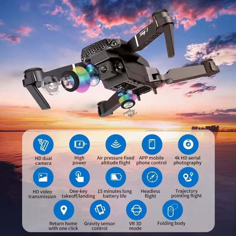 โดรนบังคับ2025 E88สำหรับมือใหม่โดรน10นาที4แกนตัวควบคุมการบิน WiFi กล้องคู่วิดีโอ4K VTOL VS E58 E99 K3