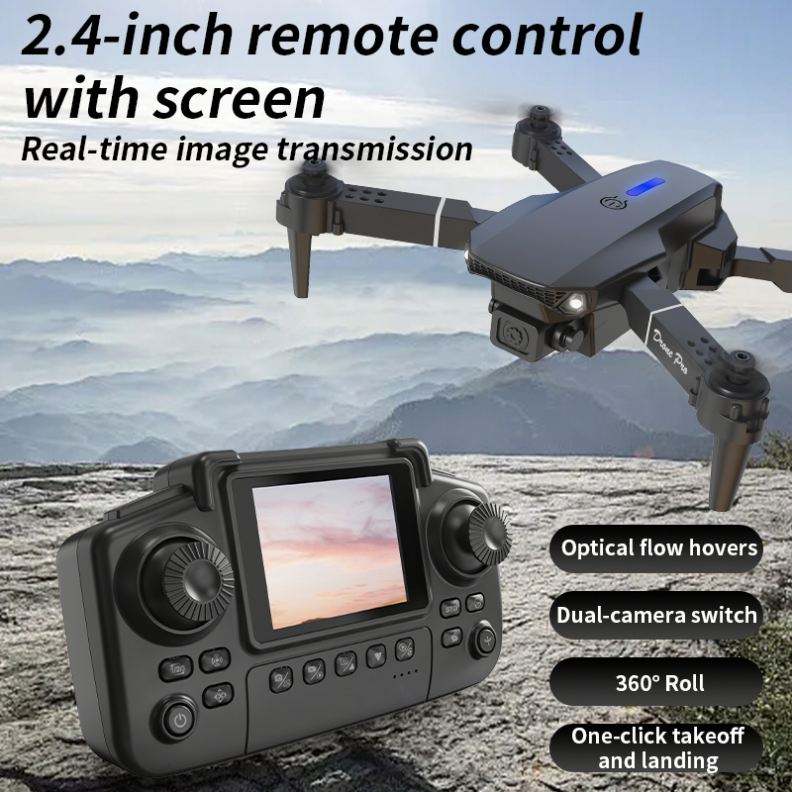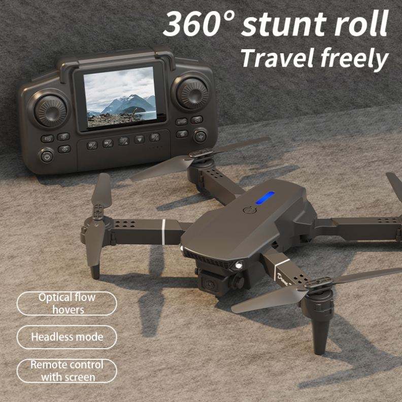 โดรนควอดคอปเตอร์พลาสติกพับได้ E88Air ปี 2025 ควบคุมด้วยหน้าจอ กล้องคู่พร้อมระบบ Optical Flow รีโมทคอนโทรล สำหรับผู้เริ่มต้น ระยะบิน 1 กม.